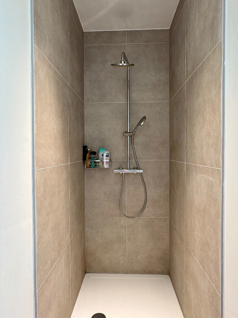 Er is 1 slaapkamer aanwezig en een badkamer met lavabo en inloopdouche.