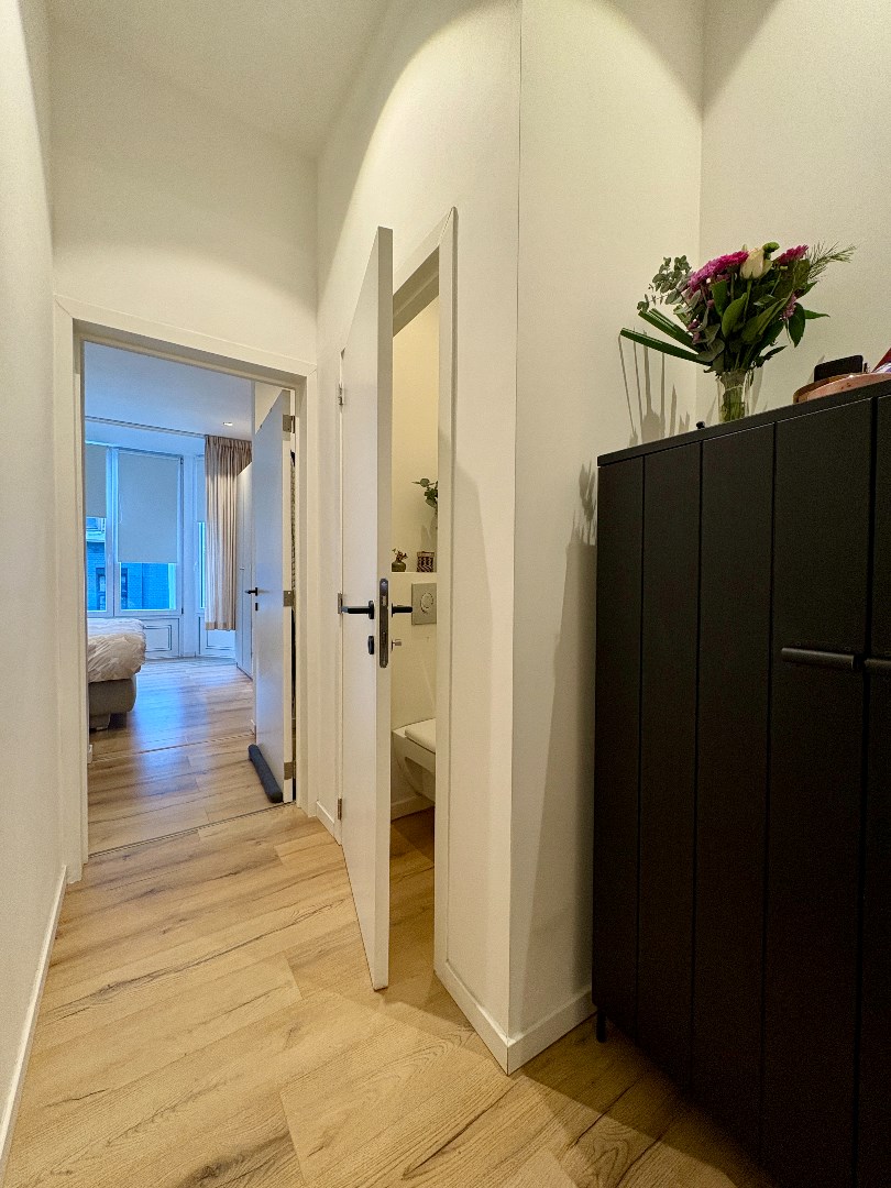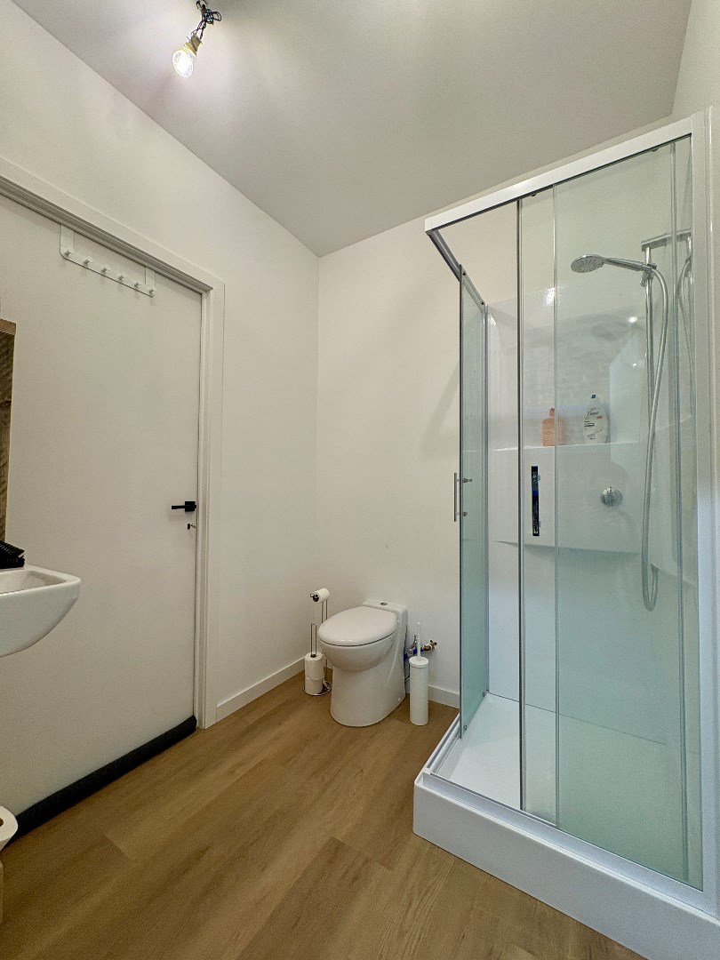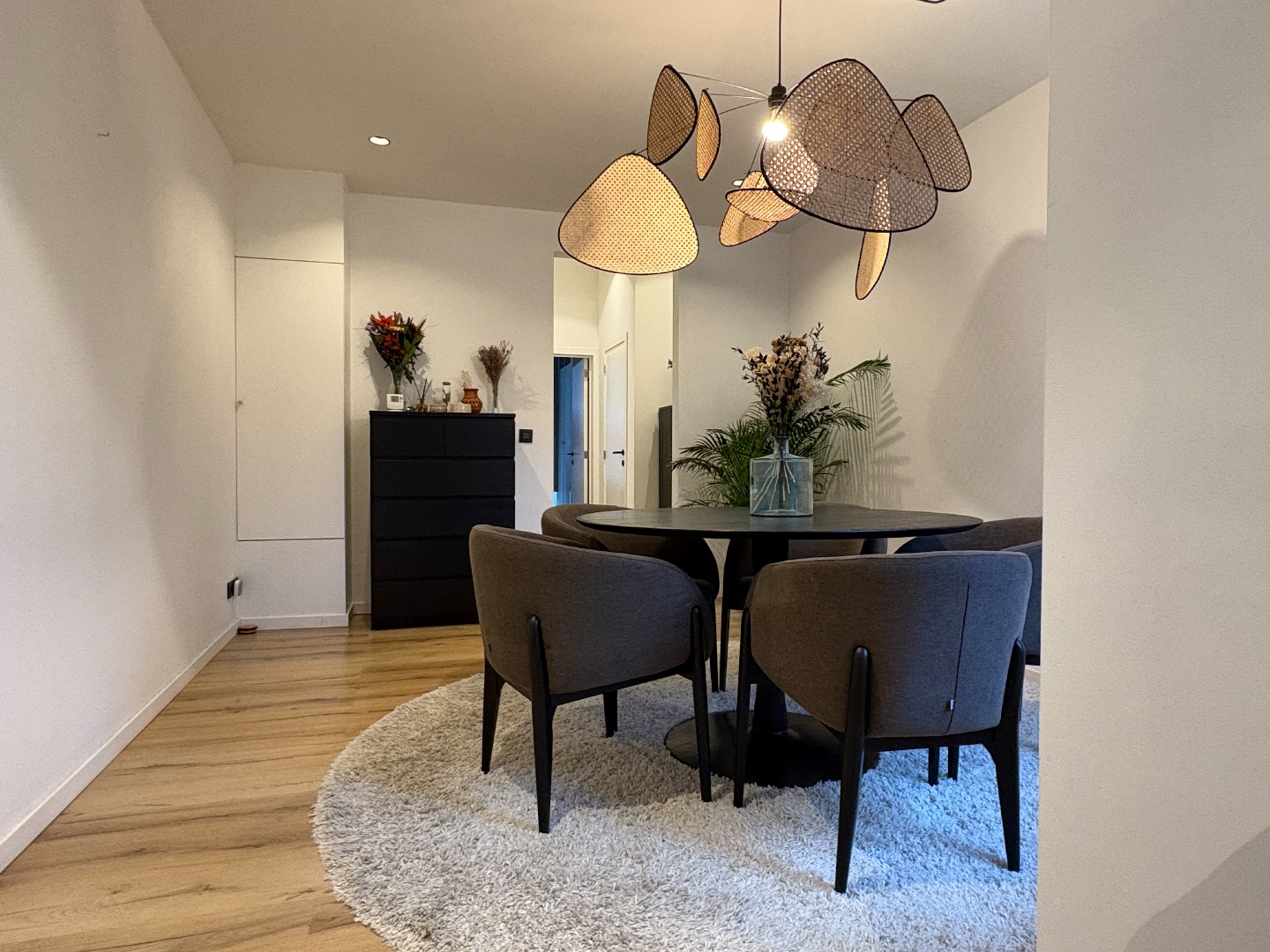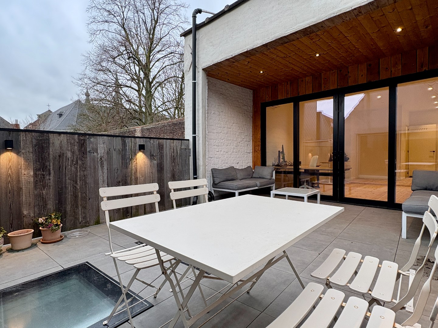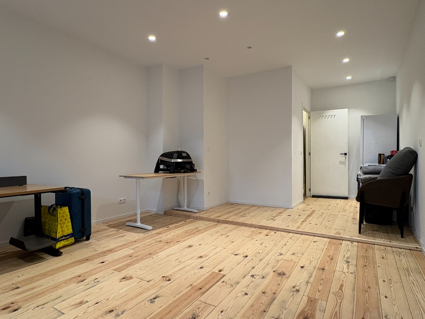 Deze verborgen parel is gelegen in het stadscentrum van Kortrijk en maakt deel uit van een kleinschalig gebouw. Het appartement bevindt zich op de eerste verdieping en is bereikbaar via de trap. De inkomhal biedt toegang tot het leef- en slaapgedeelte. Aan de voorkant van het gebouw bevindt zich de slaapkamer met een aangrenzende badkamer, uitgerust met een lavabomeubel en een inloopdouche. Verderop in de gang is er nog een apart toilet. Aan de andere kant van de gang komt men uit in de zitruimte, die beschikt over een volledig ingerichte keuken. Achteraan bevindt zich de grote, lichtrijke woonkamer met grote raampartijen, die uitzicht biedt op het dakterras. Achter het dakterras bevindt zich een extra ruimte, volledig ingericht met alle voorzieningen, evenals een bijkomende badkamer met douche en lavabomeubel. Aansluitend is er nog een berging voorzien.