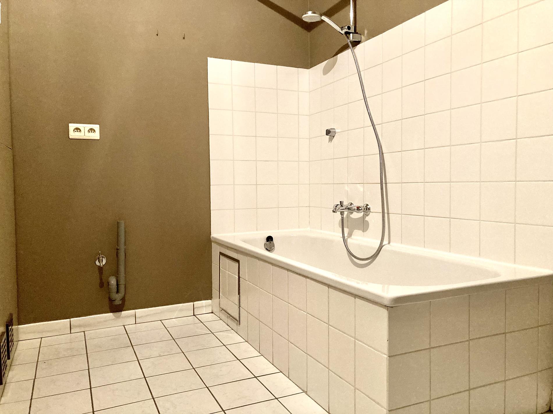 Twee ruime slaapkamers zijn voorzien van voldoende stopcontacten, ruimte voor kleerkast/bureau. De badkamer bevat een bad, wasmeubel alsook is er een wasdraad voorzien in de badkamer.