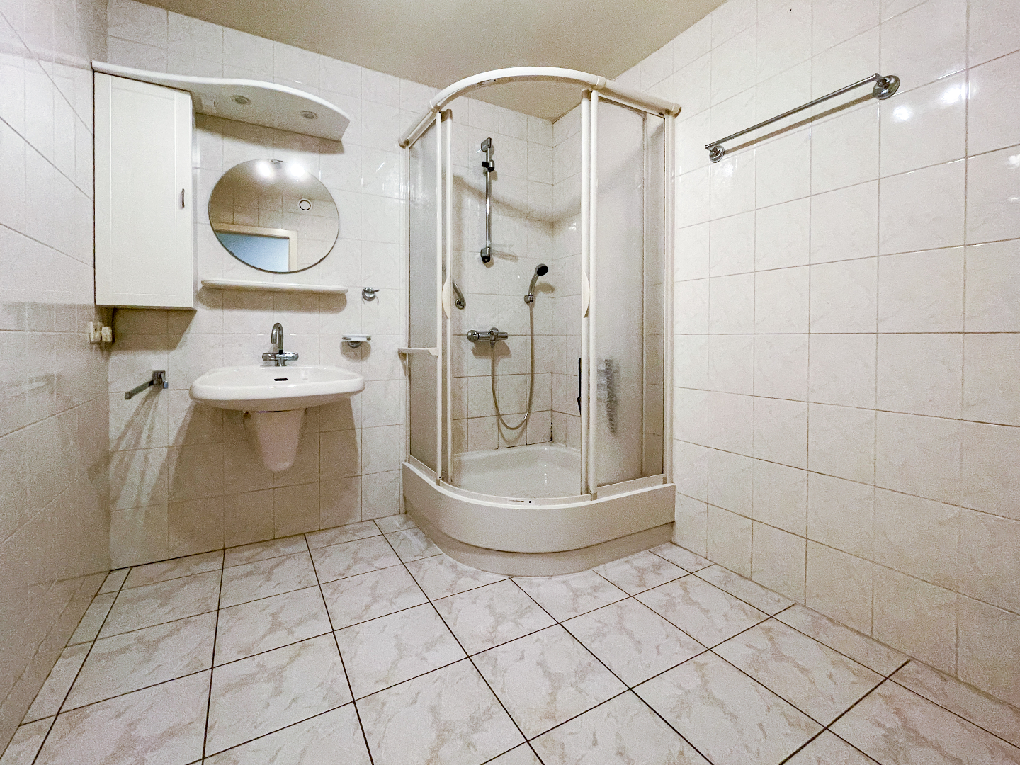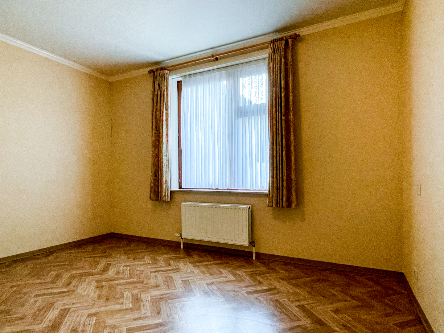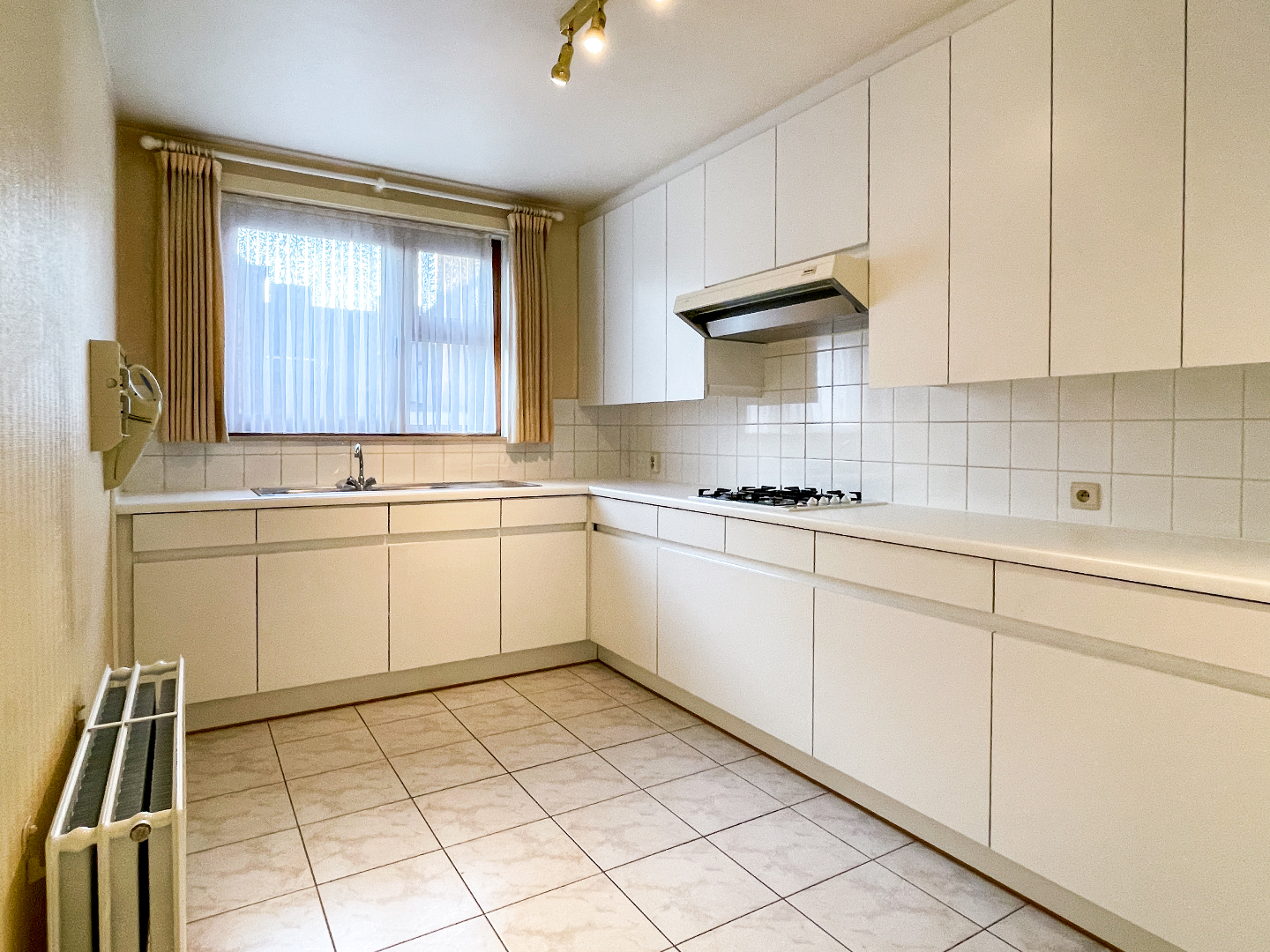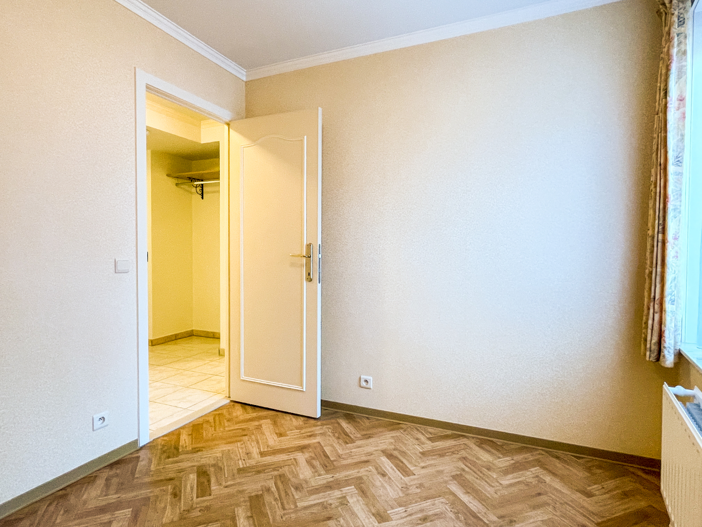 Ruime inkom met apart toilet, vestiaire en 3 slaapkamers. De leefruimte is bijzonder ruim en heeft 2 grote raampartijen. Een lichtrijk appartement! Aansluitend is de zeer grote keuken. Volledig geïnstalleerd en vooral vele kastruimte. Om de hoek is de berging, terug een ruime berging!