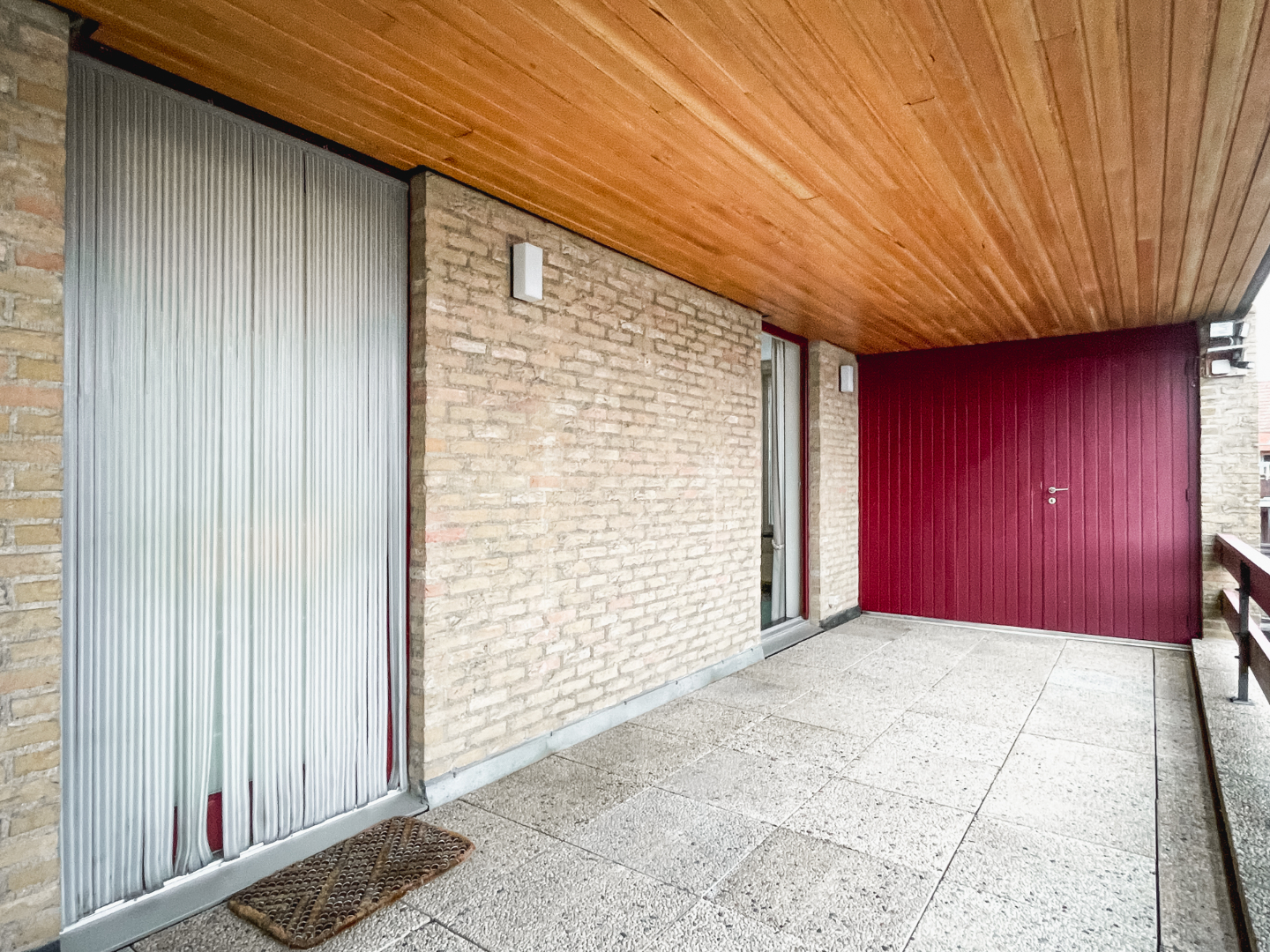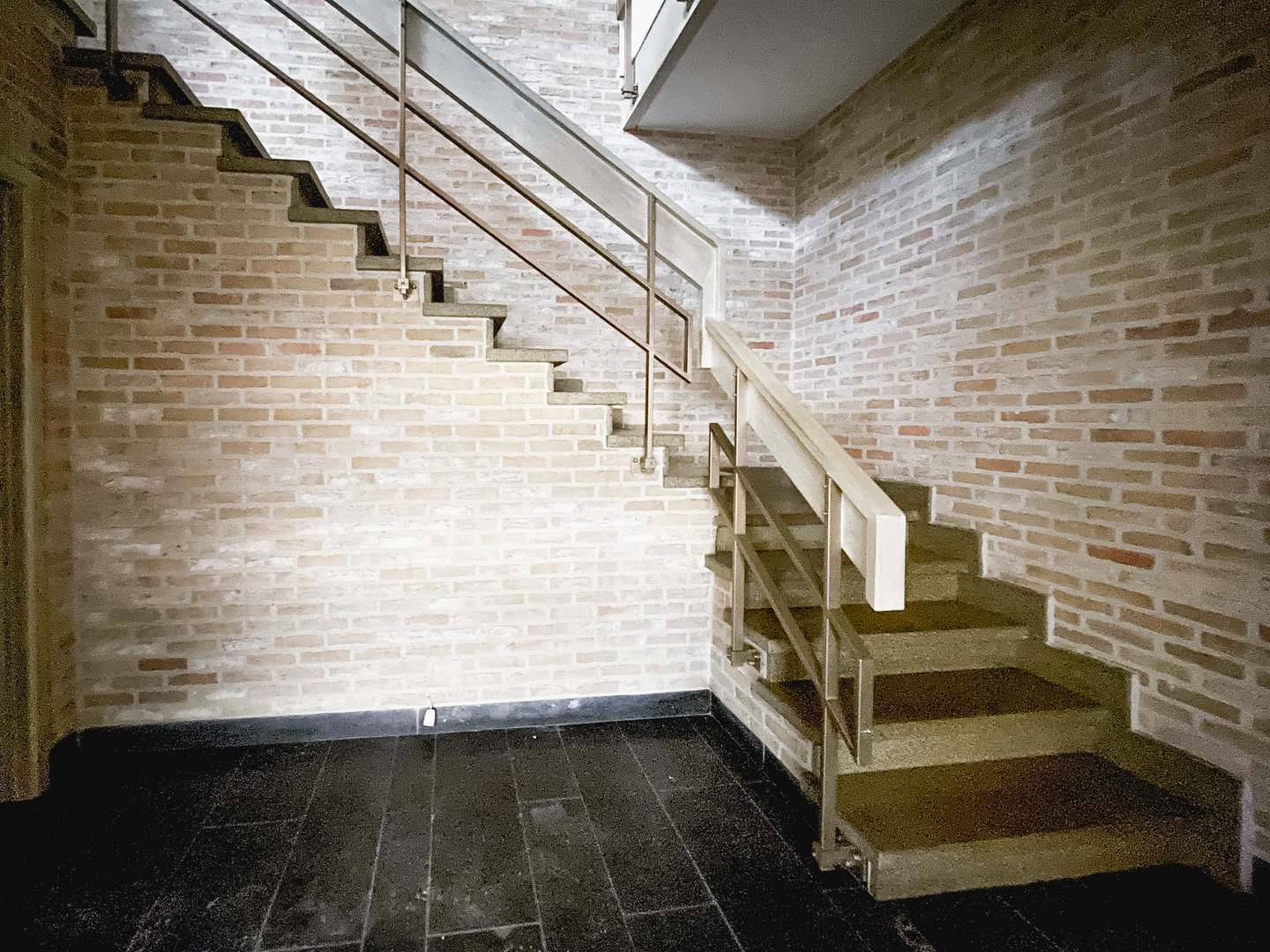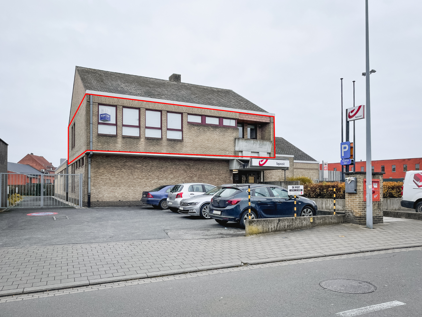 Dit appartement bevindt zich in centrum Kuurne, boven het kantoor van de post. Het beschikt over een private inkomhal, met zeer ruime berging. De trap brengt ons naar het verdiep waar zich een apart gastentoilet bevindt.