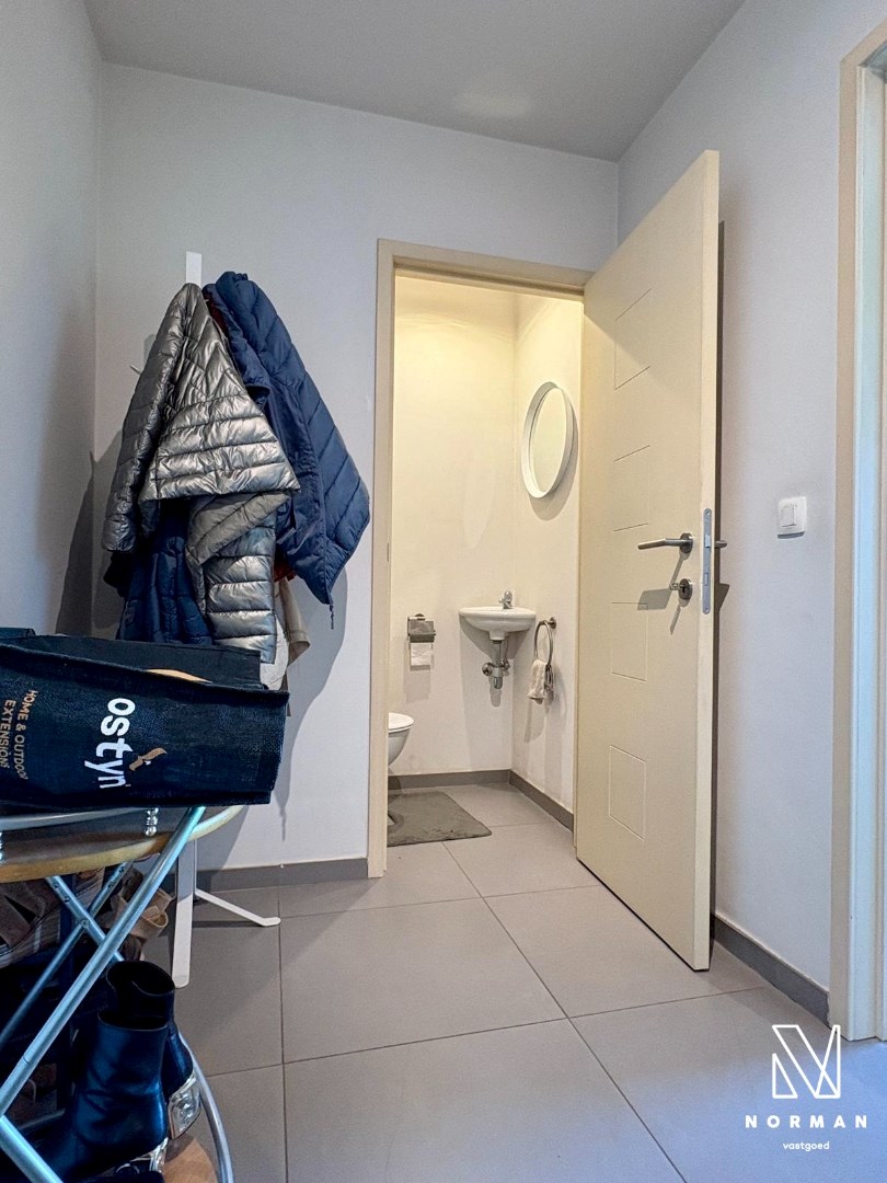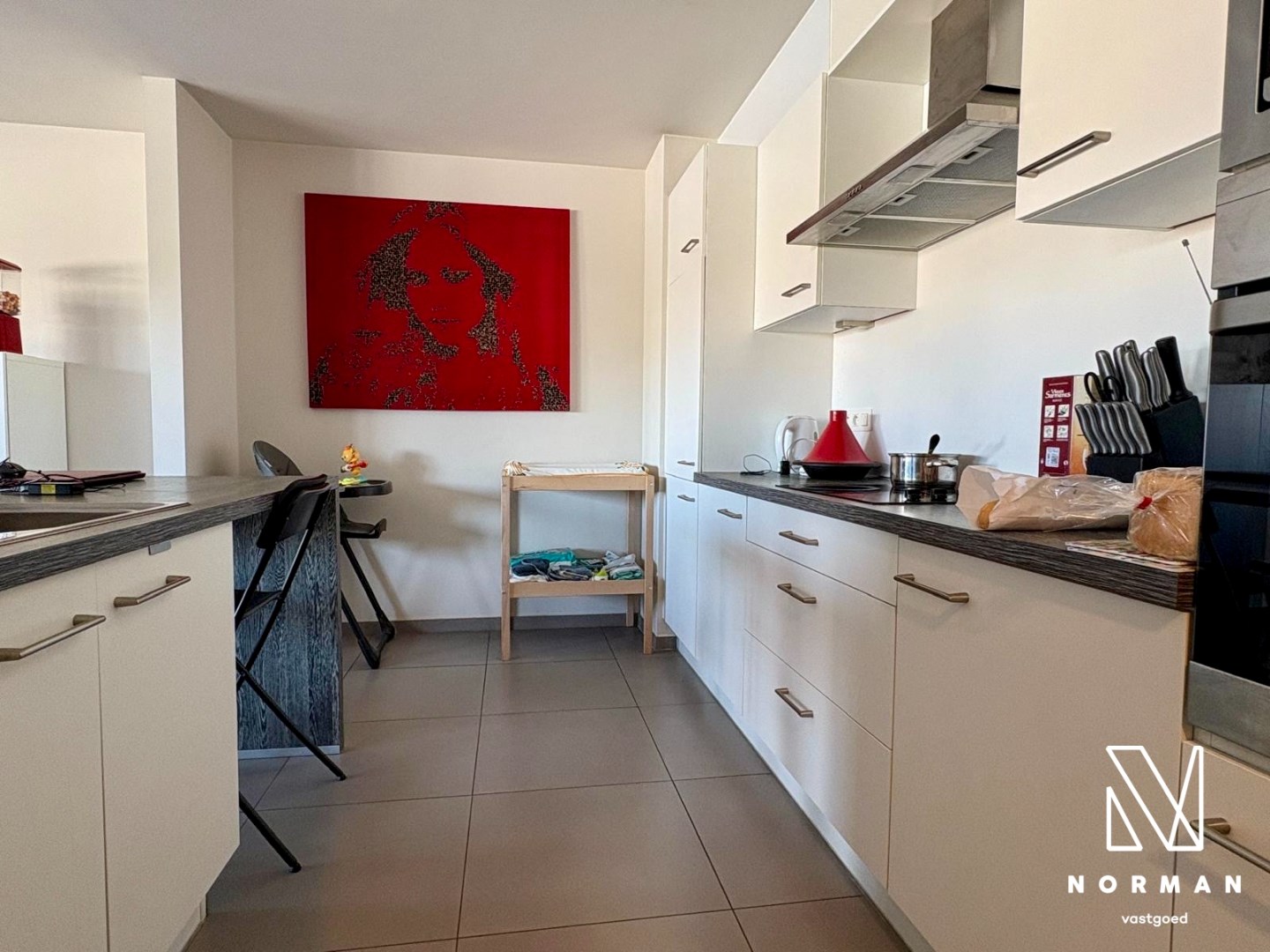 Bij het binnenkomen kom je meteen in de lichtrijke leefruimte, die zorgt voor een open en aangename sfeer. Aansluitend vind je de volledig uitgeruste keuken. Naast de keuken bevindt zich een handige berging.