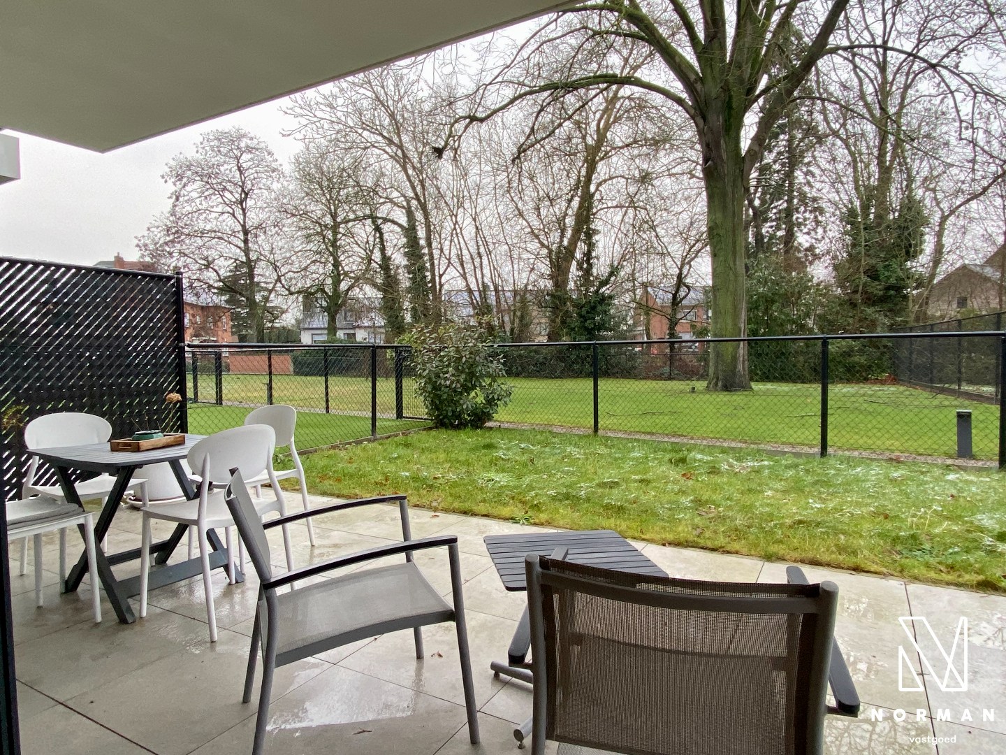 Het appartement is gelijkvloers gelegen en bereikbaar via een aparte inkomdeur en ingang mogelijk langs de tuin via het tuinpoortje.