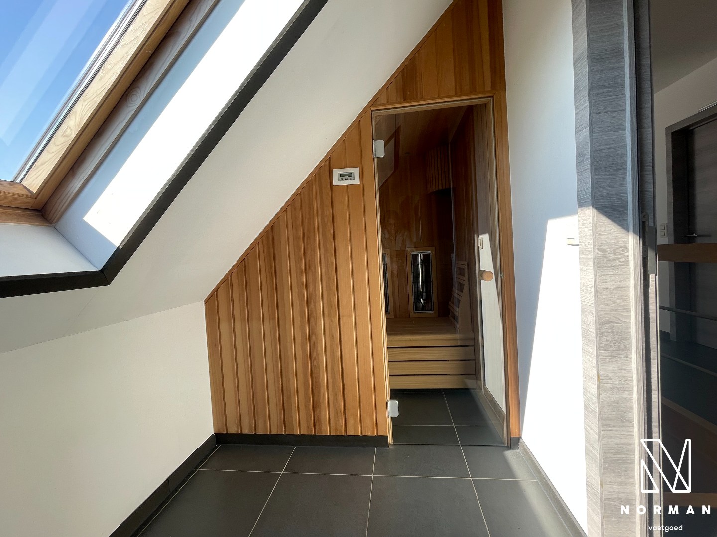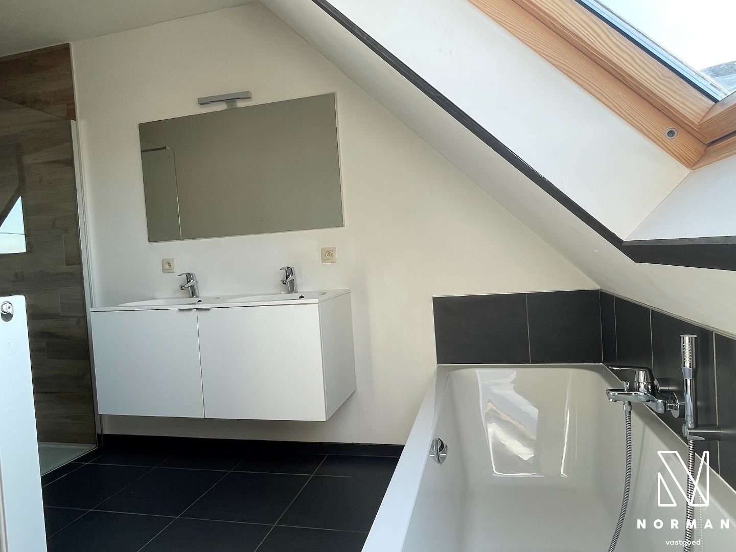 dubbele lavabo in meubel, douche, ligbad, infraroodcabine (soort sauna)