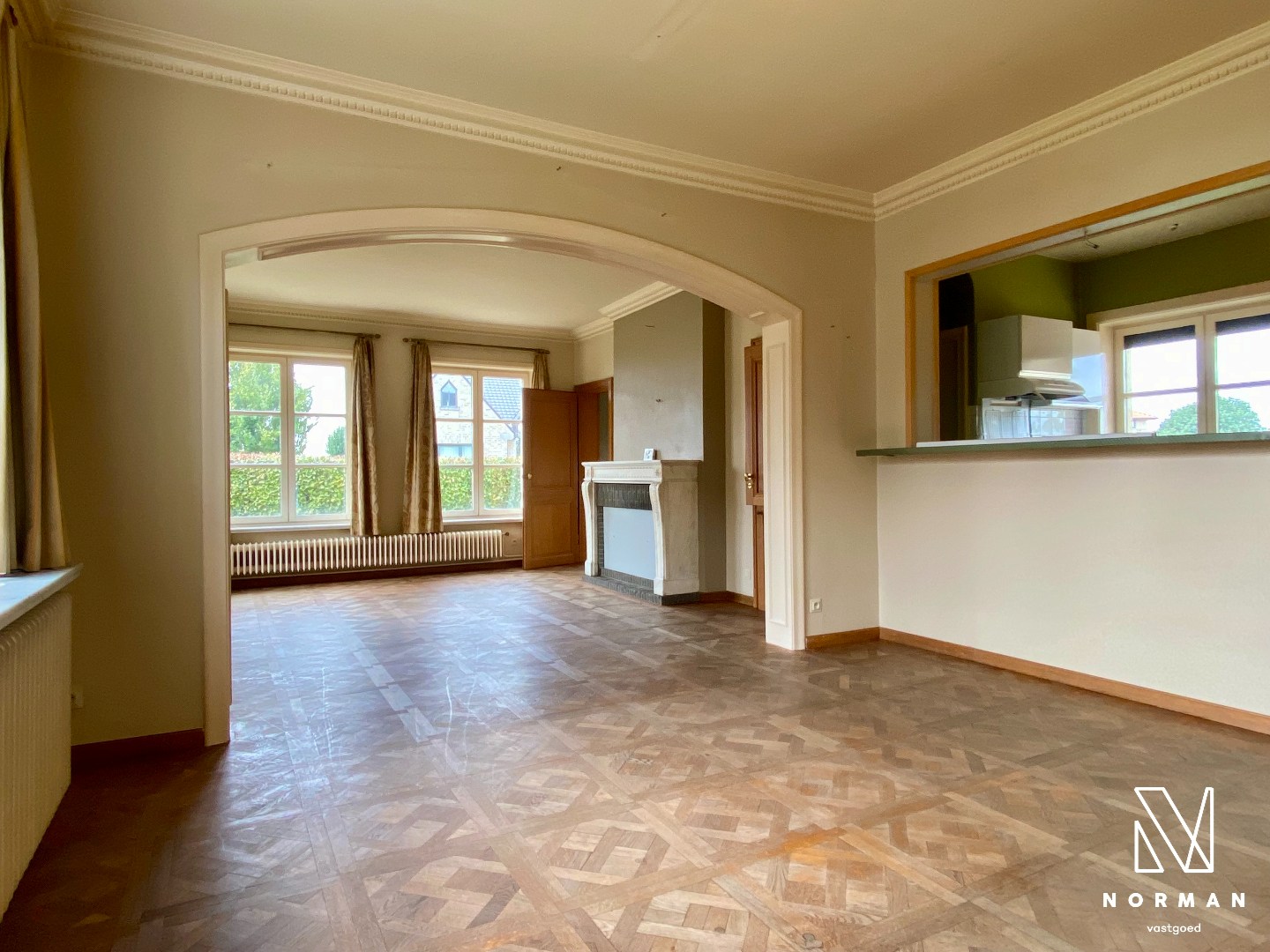 De leefruimte is zeer aangenaam en voelt gezellig aan door het authentieke parket.