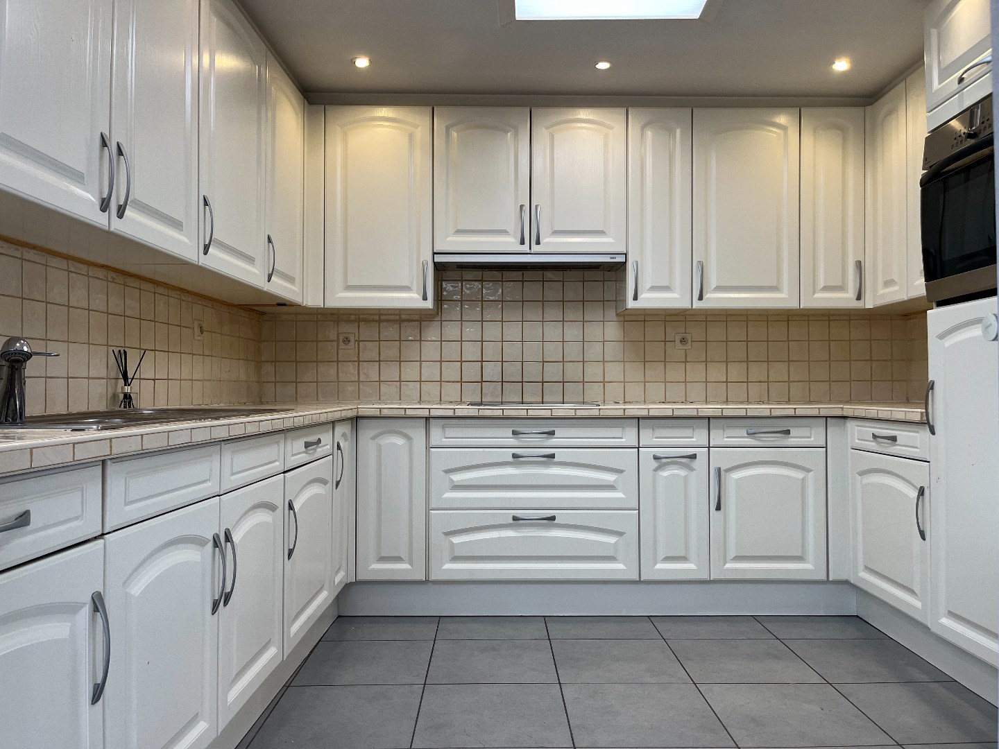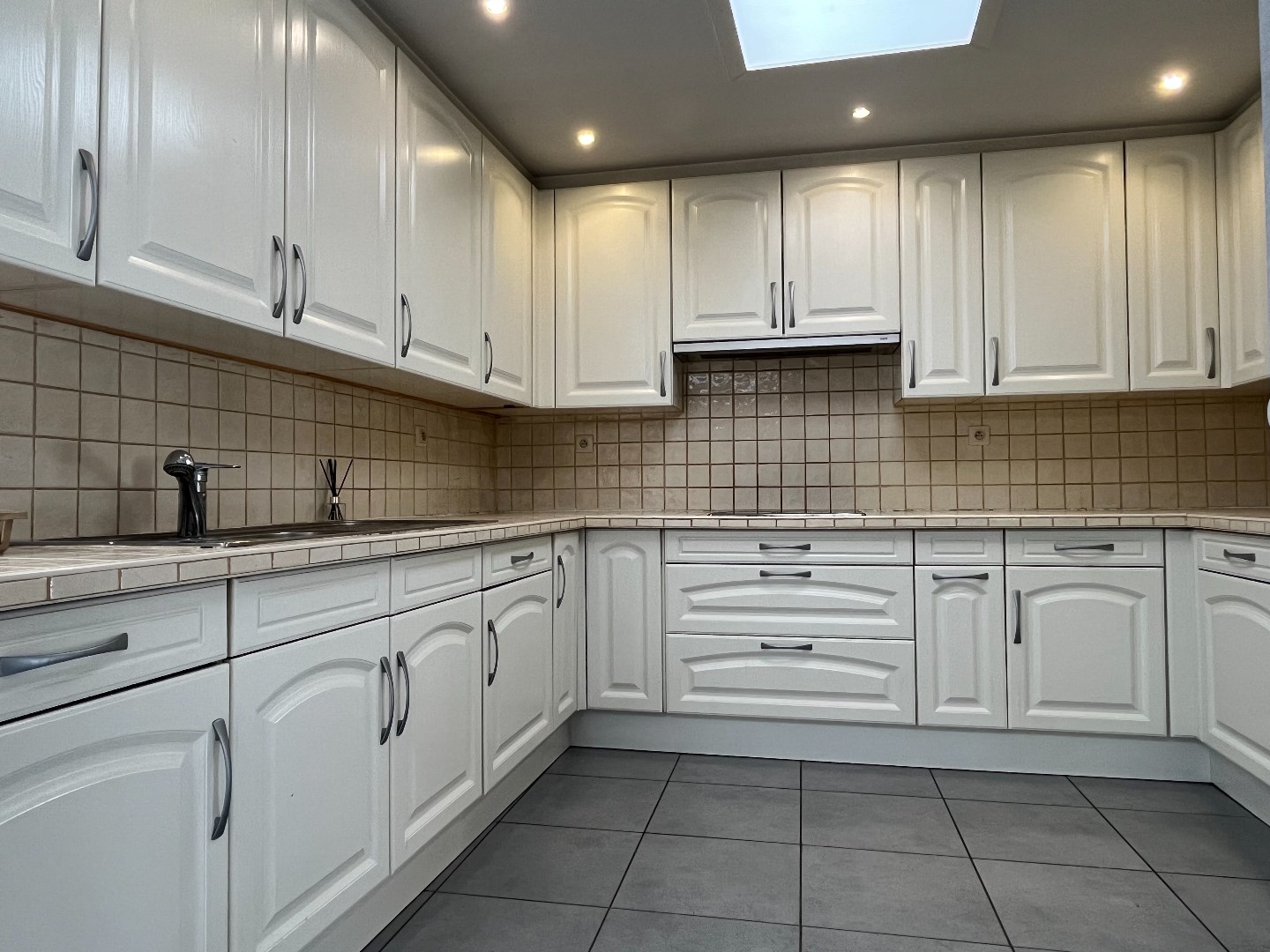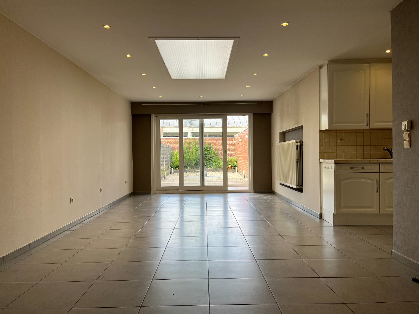 Bij het binnengaan van de woning kom je in de ruime, lichtrijke leefruimte met aansluitend de uitgeruste keuken.