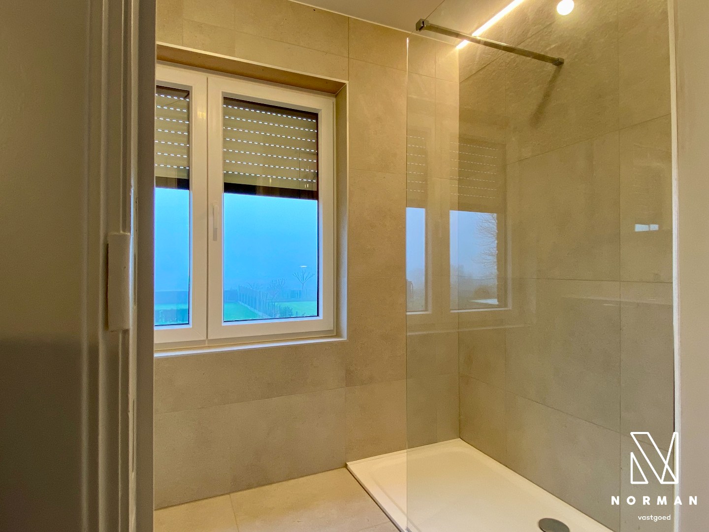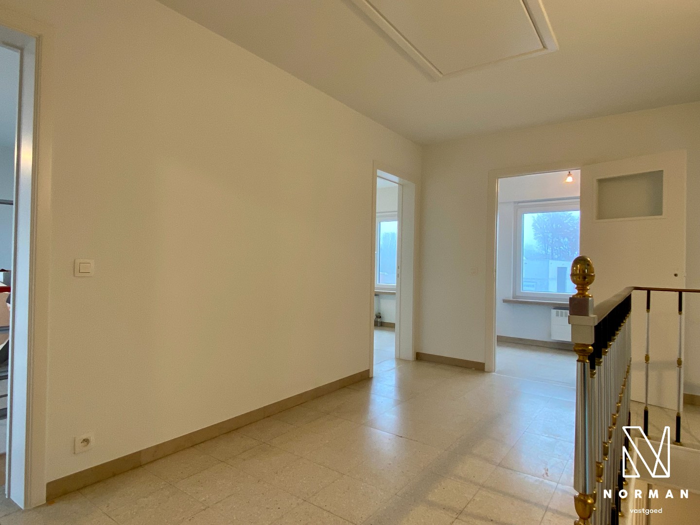 Op het verdiep vinden we 4 ruime slaapkamers, 1 kleinere kamer voor speelkamer of bureau en de badkamer met toilet, lavabomeubel en inloopdouche. De woning heeft bovendien nog een ruime opbergzolder.