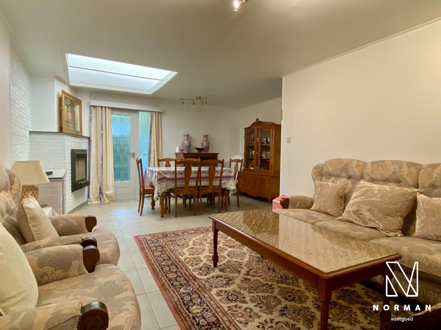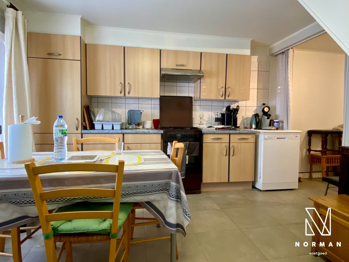 Bij het binnenkomen kunnen we vanuit de inkomhal naar de keuken met zitplaats en leefruimte.