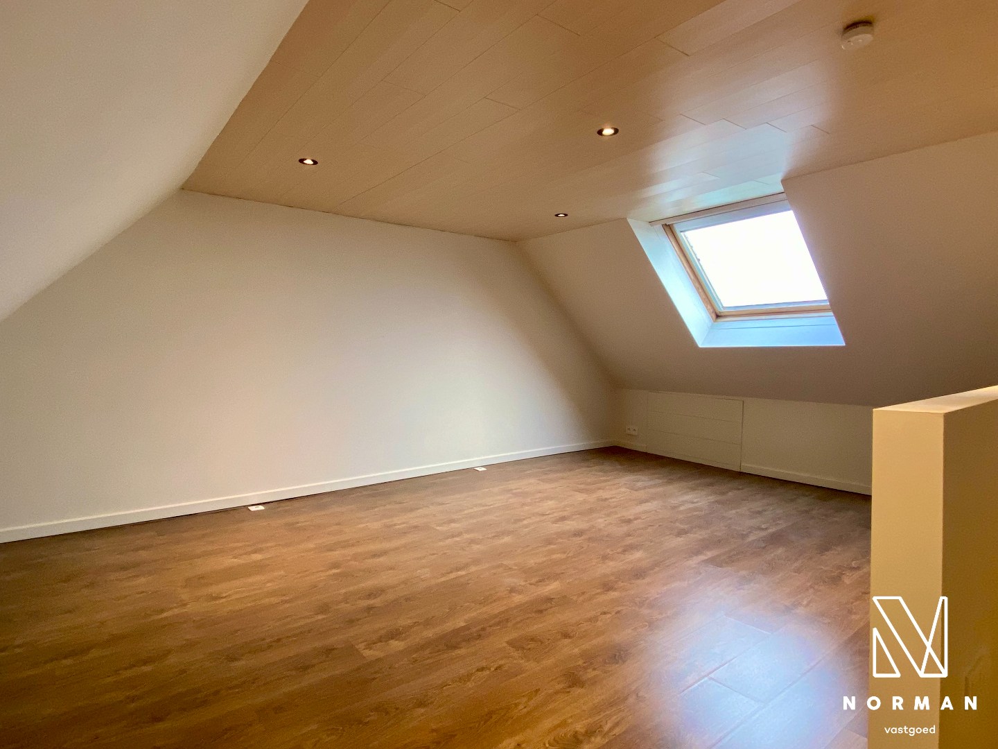 Op het tweede verdiep is er nog een grote slaapkamer in het dak.