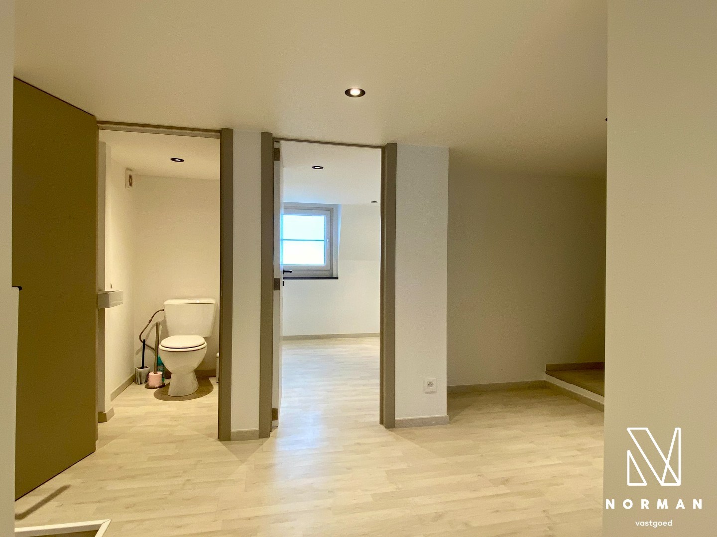Op het verdiep is er een ruime overloop voor eventueel bureauruimte of speelruimte voor kinderen. Hier bevinden er zich twee slaapkamers en een afzonderlijk toilet.