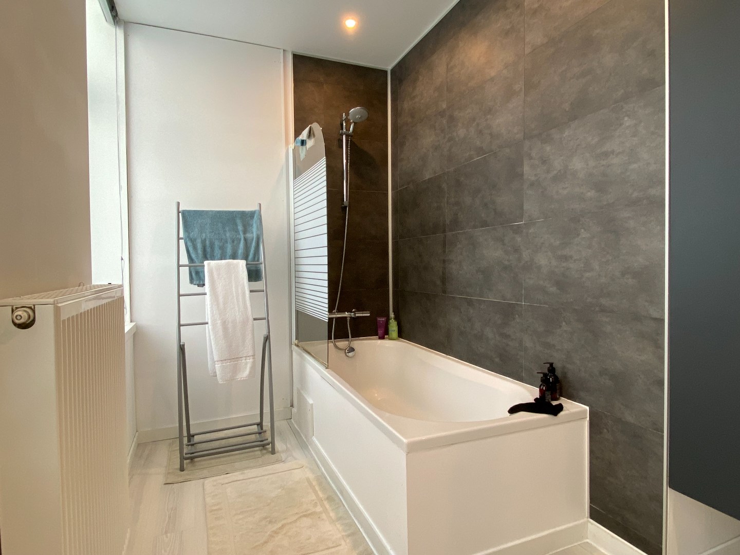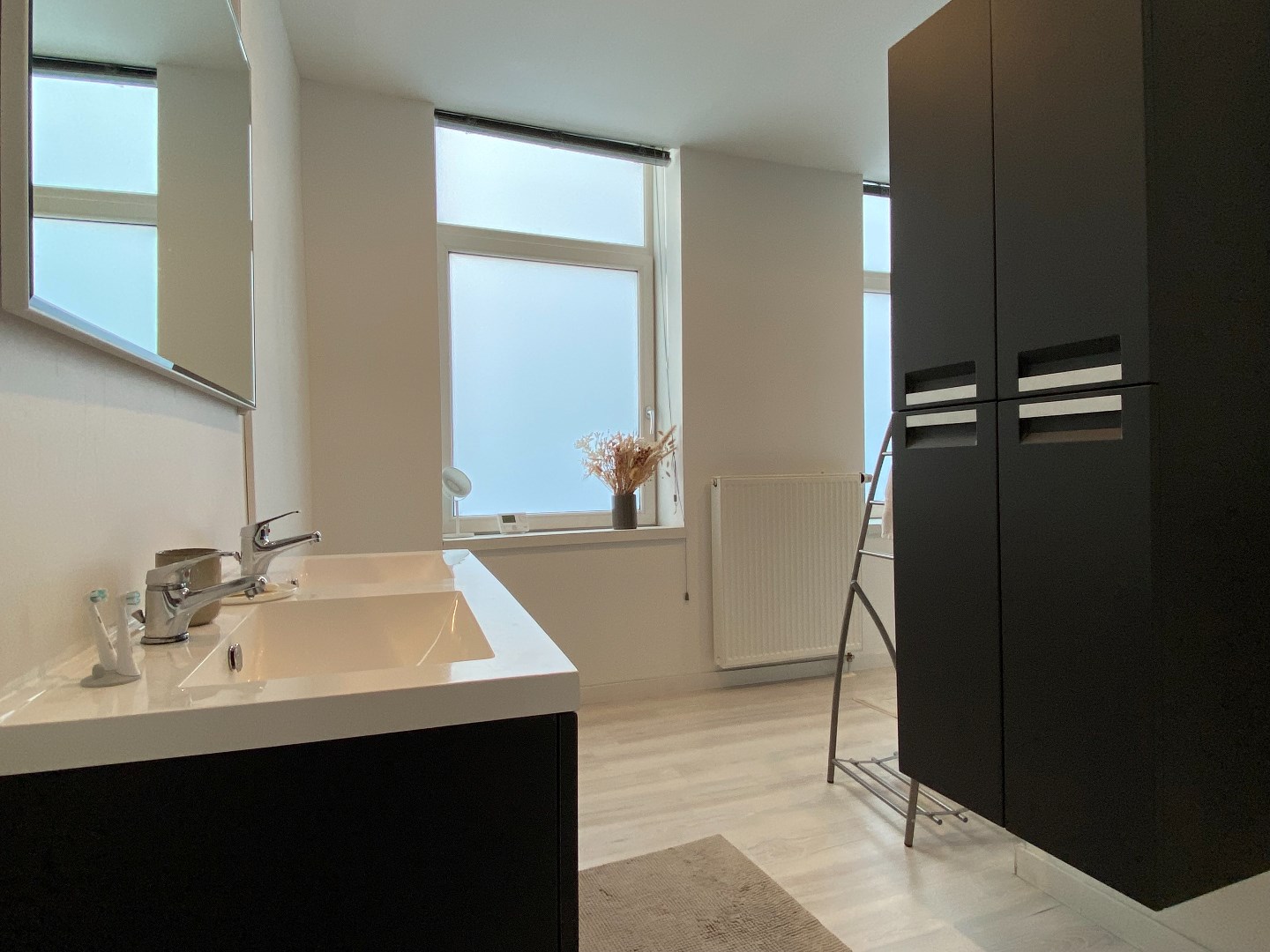 Deze grote lichtrijke rijwoning op een boogscheut van het centrum komt opnieuw vrij tegen 1 februari 2025. De inkomhal is heel ruim en lichtrijk en biedt toegang naar de extra bergruimte voor het stallen van bijvoorbeeld fietsen.