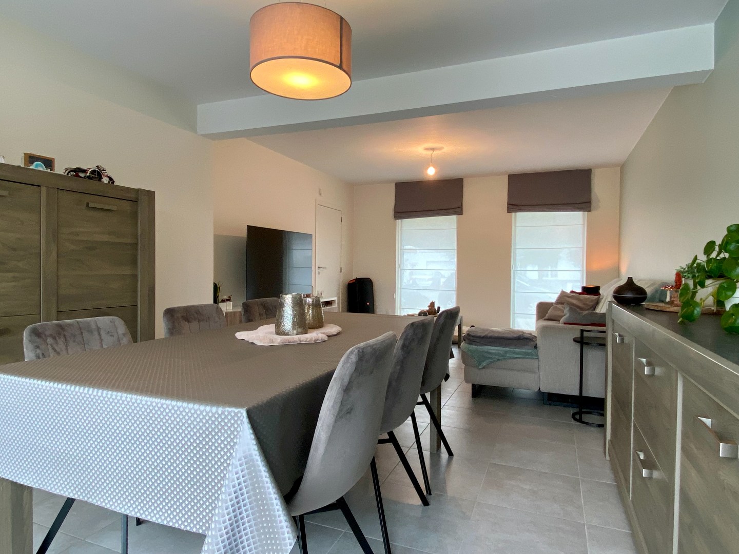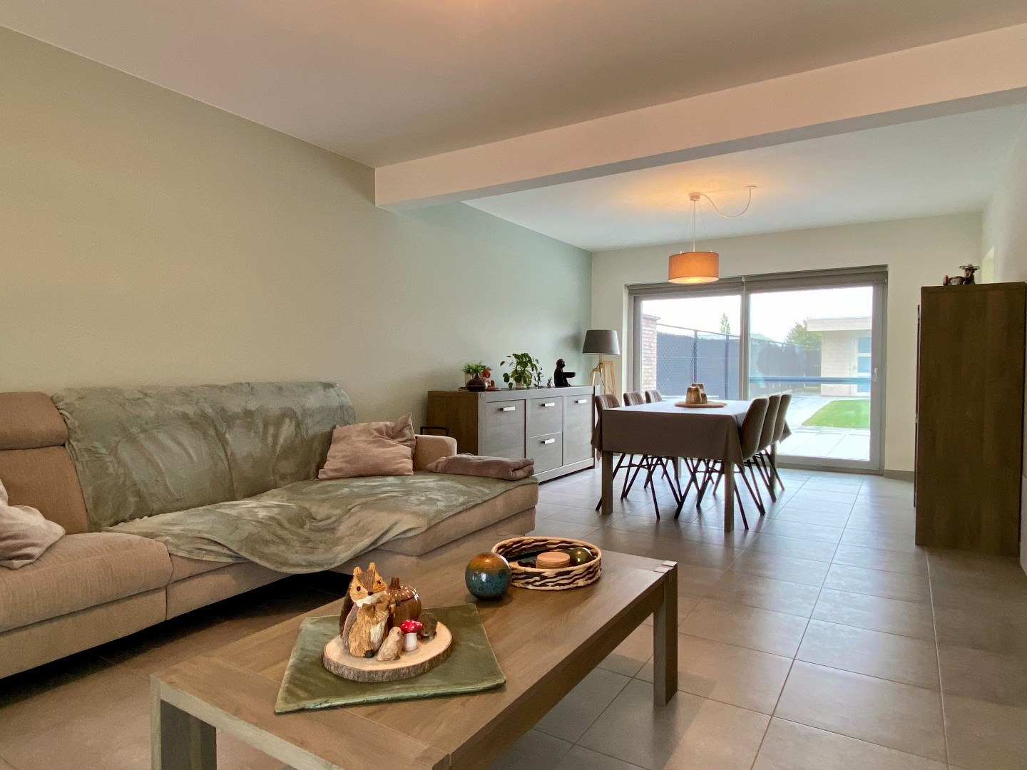 Het gelijkvloers bestaat uit een inkomhal met afzonderlijk toilet, ruime leefruimte met zicht op de tuin, aanpalende ruime keuken met alle nodige toestellen. Absolute troef is de inpandige garage met extra toegang vanuit de garage naar de tuin. Het grote terras geeft zicht op de tuin met als extra pluspunt het ruime tuinhuis achteraan.