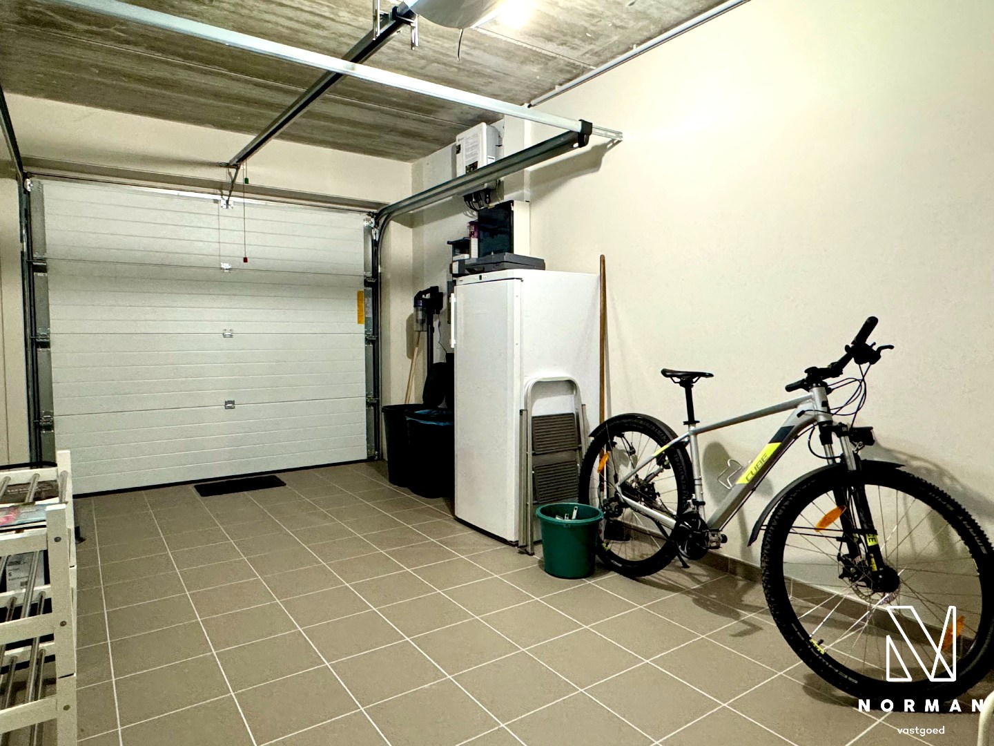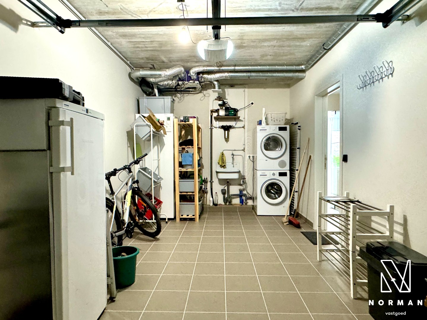 De woning beschikt bovendien over een garage met aansluiting voor wasmachine en droogkast (overname mogelijk van de verhuurder).