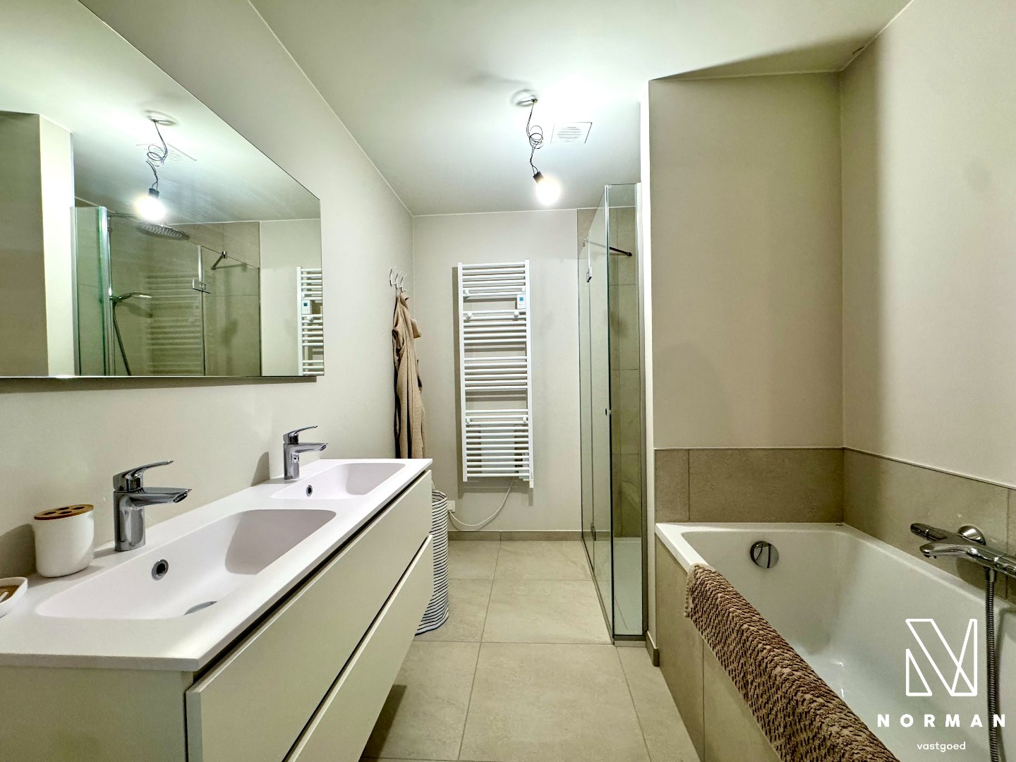 Op de verdieping vind je de nachthal, drie ruime slaapkamers (waarvan één met dressingkast), een apart toilet en een stijlvolle badkamer met douche, ligbad en dubbele lavabo in meubel.