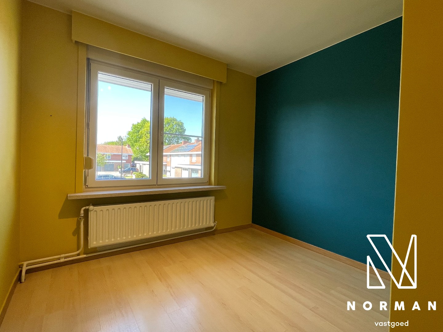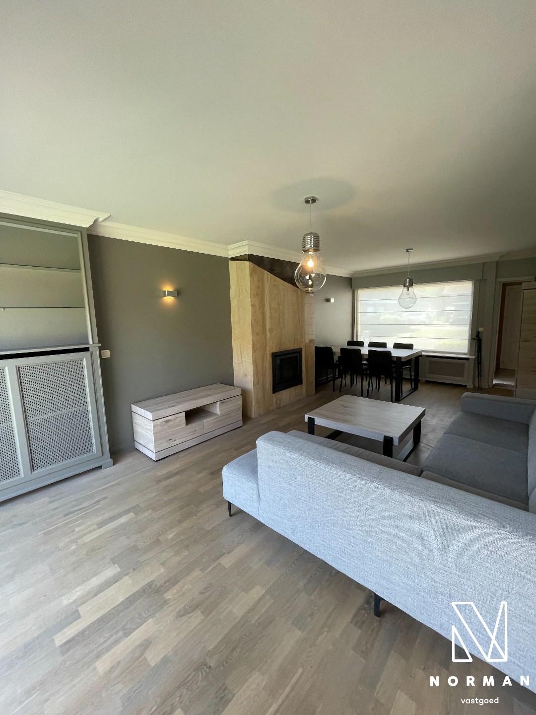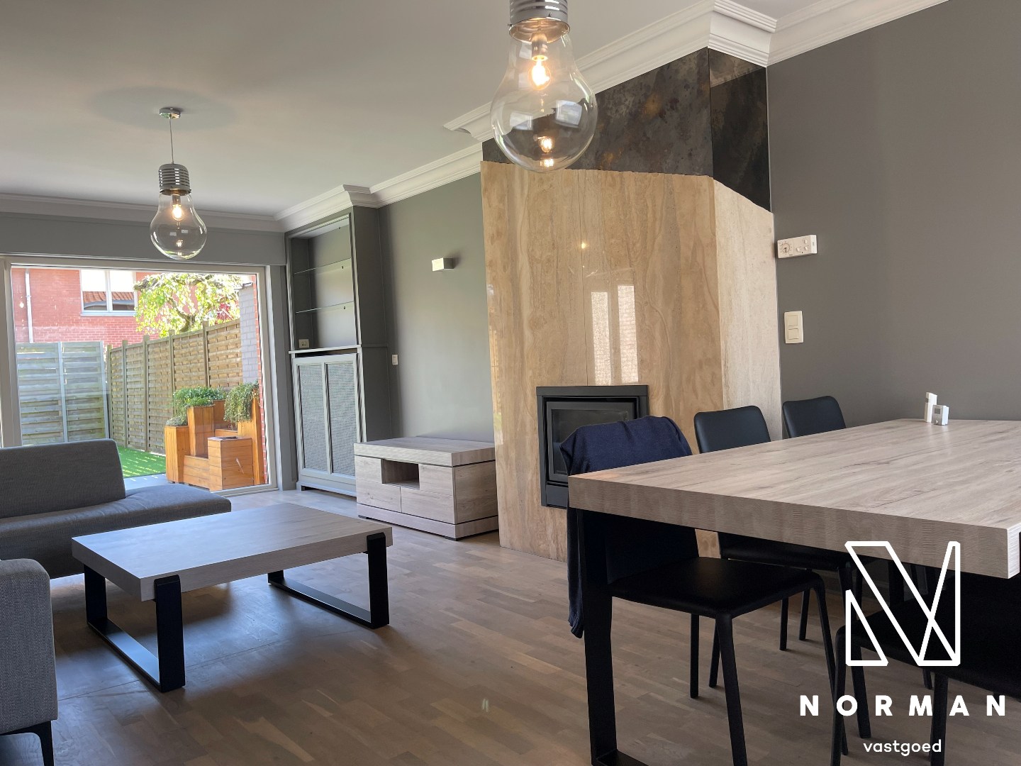 De woning omvat een inkomhal met gastentoilet, een lichtrijke leefruimte met zicht op de tuin en een keuken uitgerust met fornuis, oven en dampkap (de losstaande koelkast kan worden overgenomen). Aansluitend is er een praktische bijkeuken en een garage met extra bergruimte.