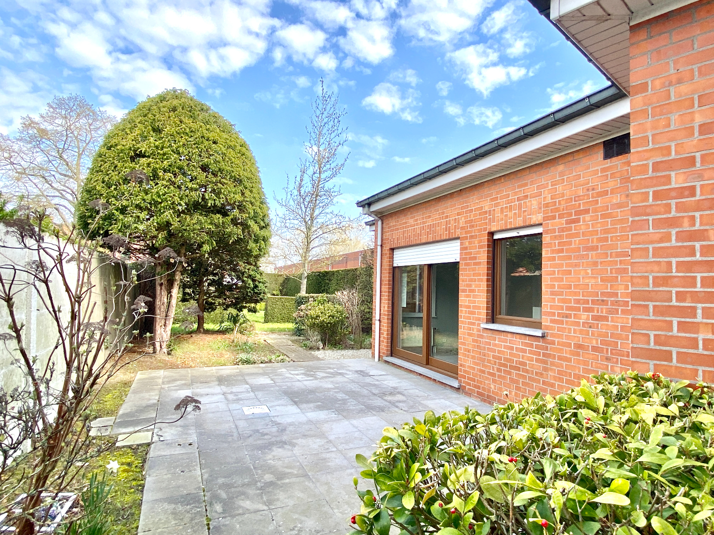 De eigendom heeft een zonnig terras en een mooie groene tuin.