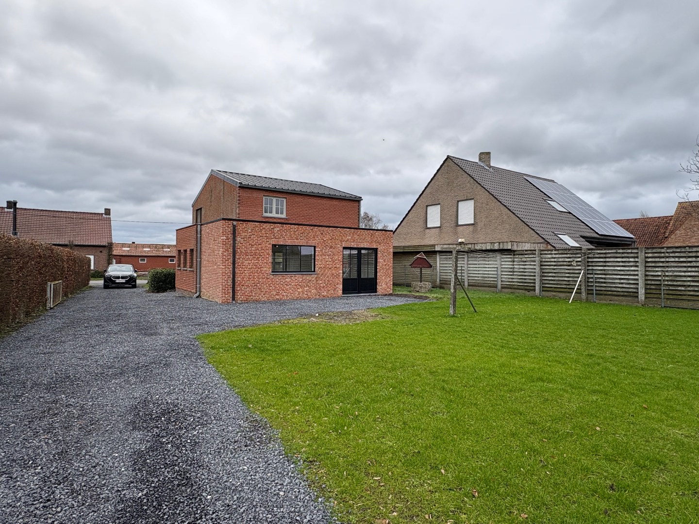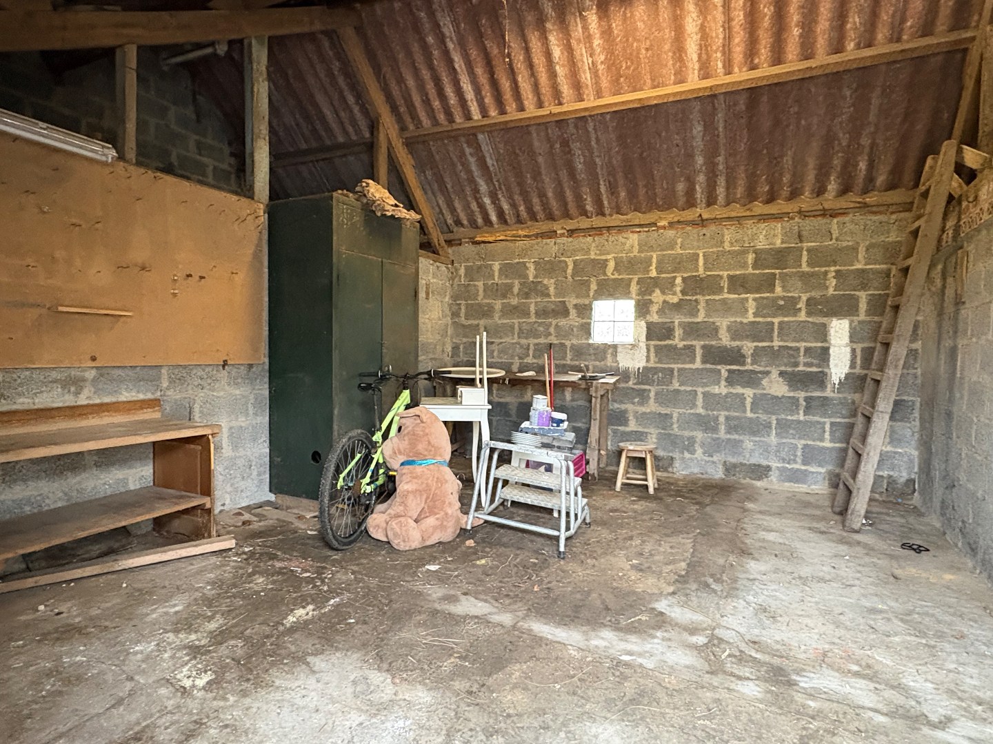 De woning beschikt over een zeer ruime tuin met voldoende parkeergelegenheid. Achteraan het perceel kan je de auto binnen plaatsen. Bovendien zijn er op het perceel nog mogelijkheden om kippen of andere kleine dieren te houden.