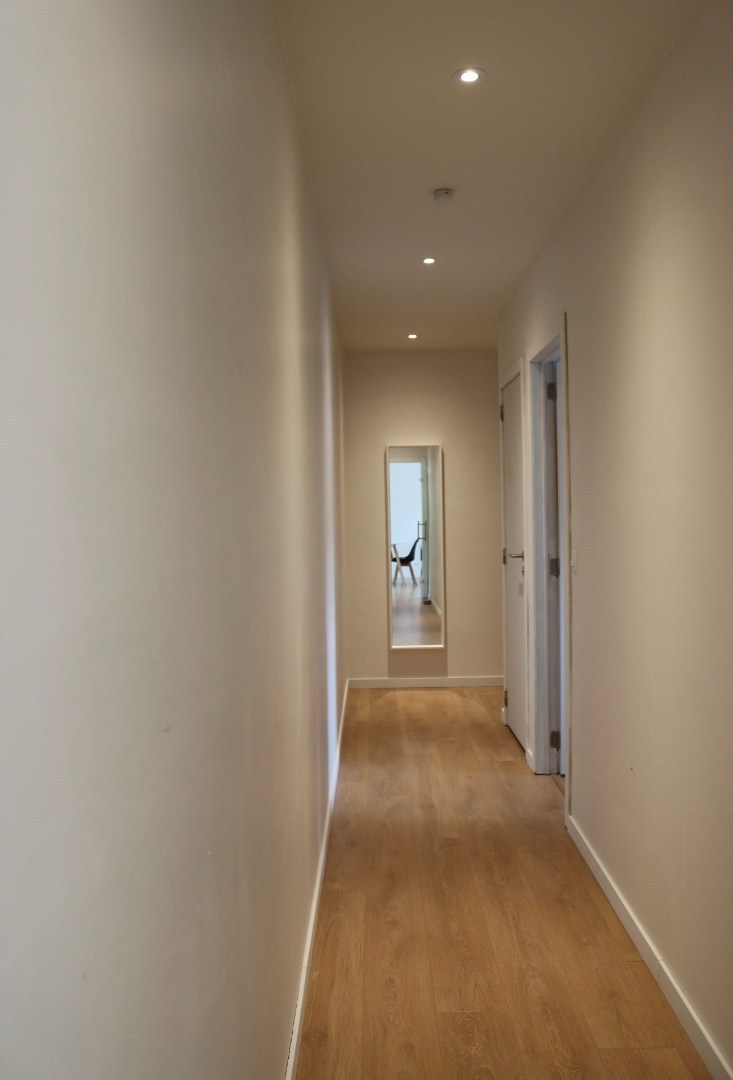 Binnen het binnengaan van het appartement heb je op de linkerkant een vestiaire. Via de gang kom je rechtstreeks in de woonkamer terecht.