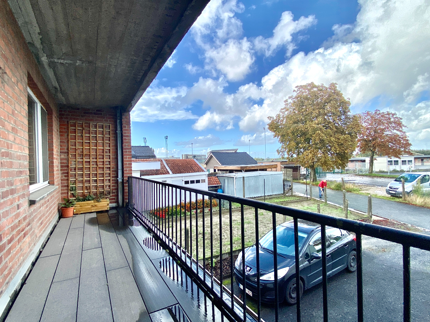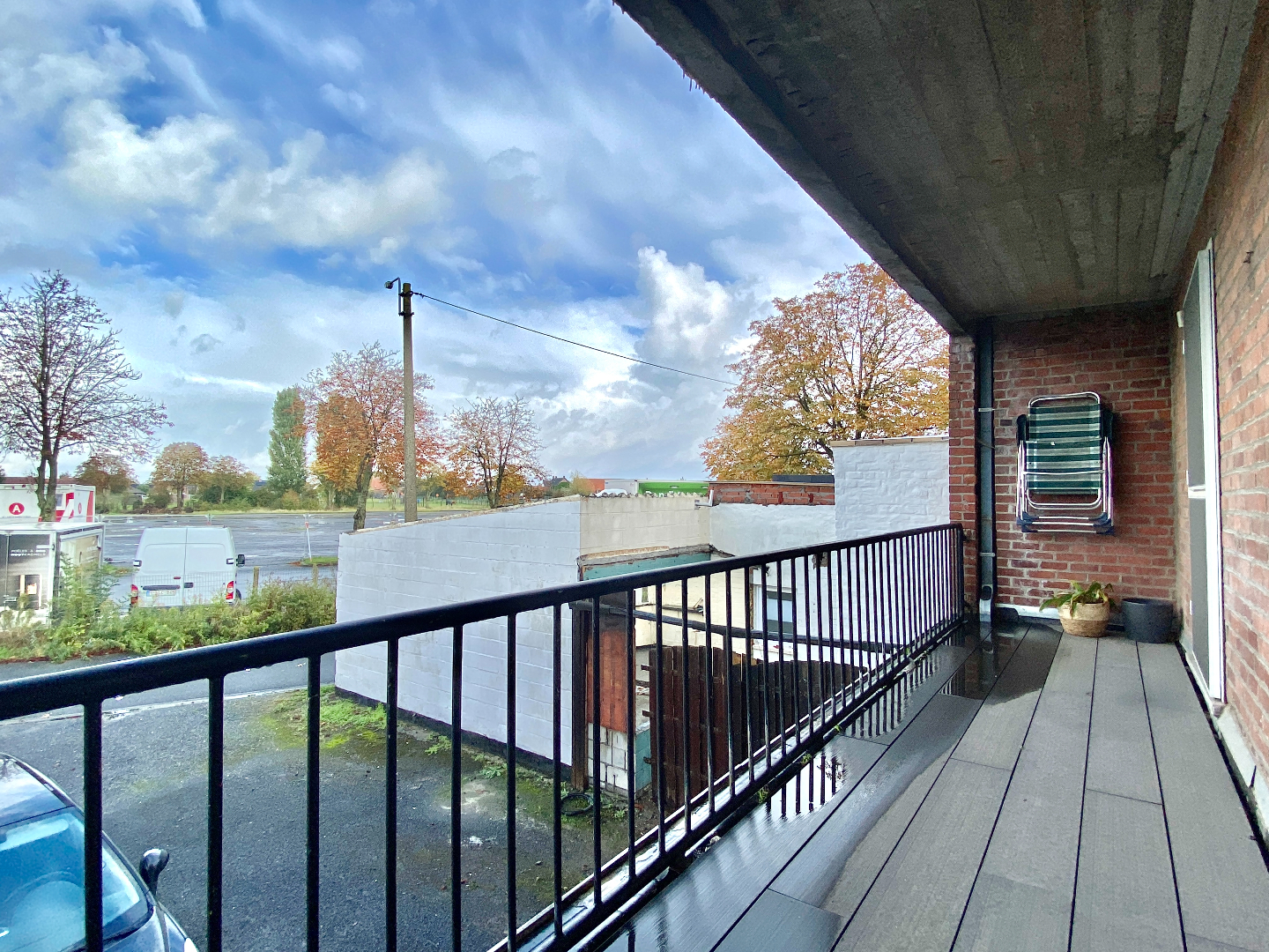 Achteraan het appartement zijn er 2 ruime kamers. Door een van deze kamers kan je naar het terras. Deze is over de gehele breedte van het appartement. De garage is bijzonder ruim en biedt plaats voor het stallen van 2 wagen en er is nog een oprit. Hier staat ook de chauffageketel.