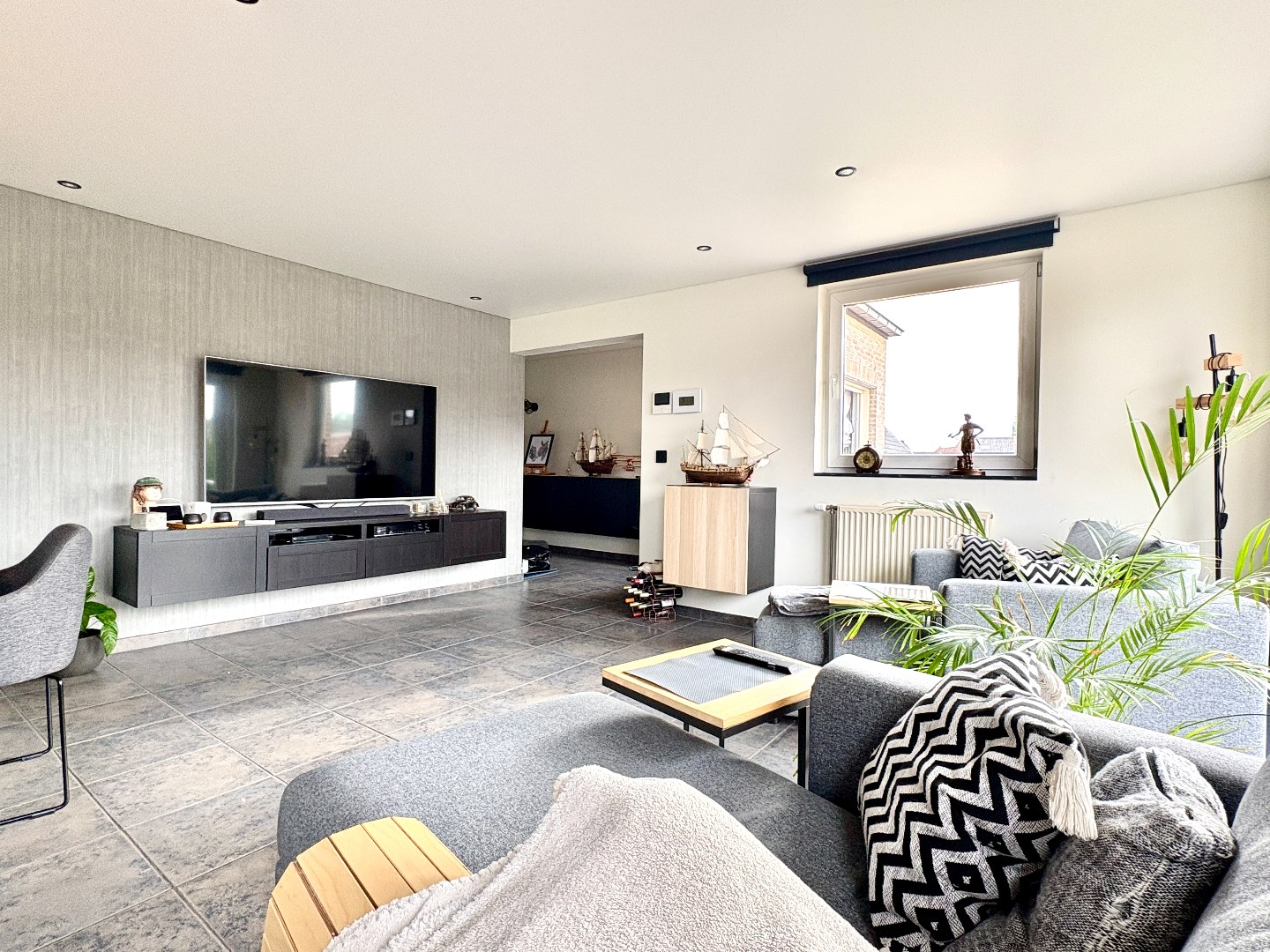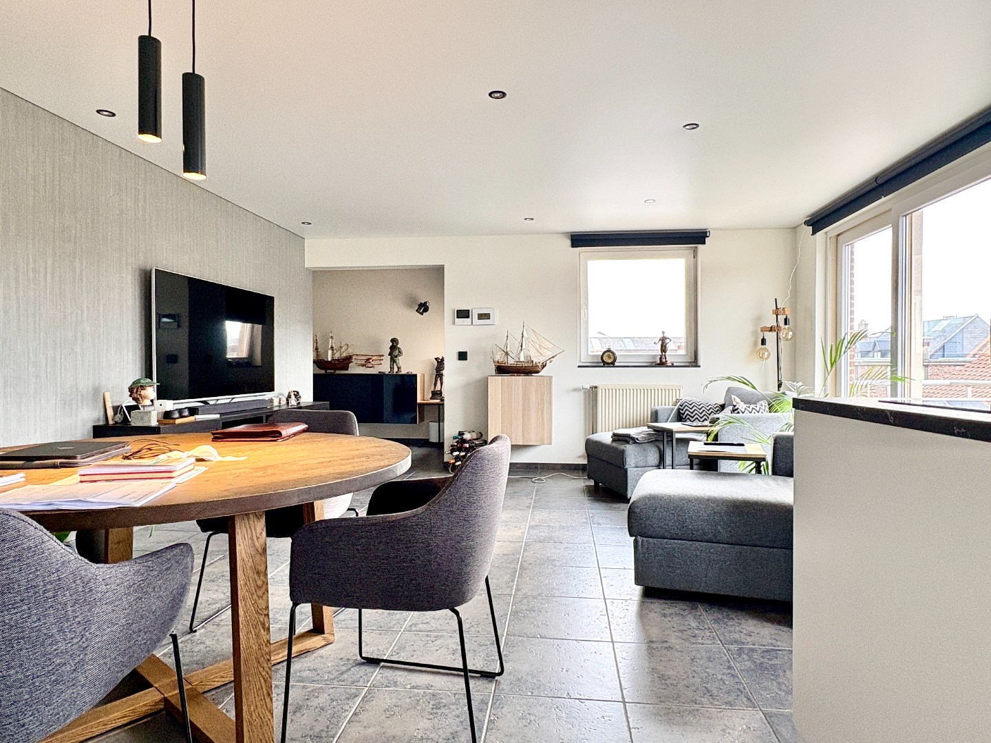 Dit appartement is gebouwd in het jaar 2003, toch hebben deze mensen heel wat wijzigingen doorgevoerd in deze woonst. Domotica, spanplafond, nieuwe badkamer,…