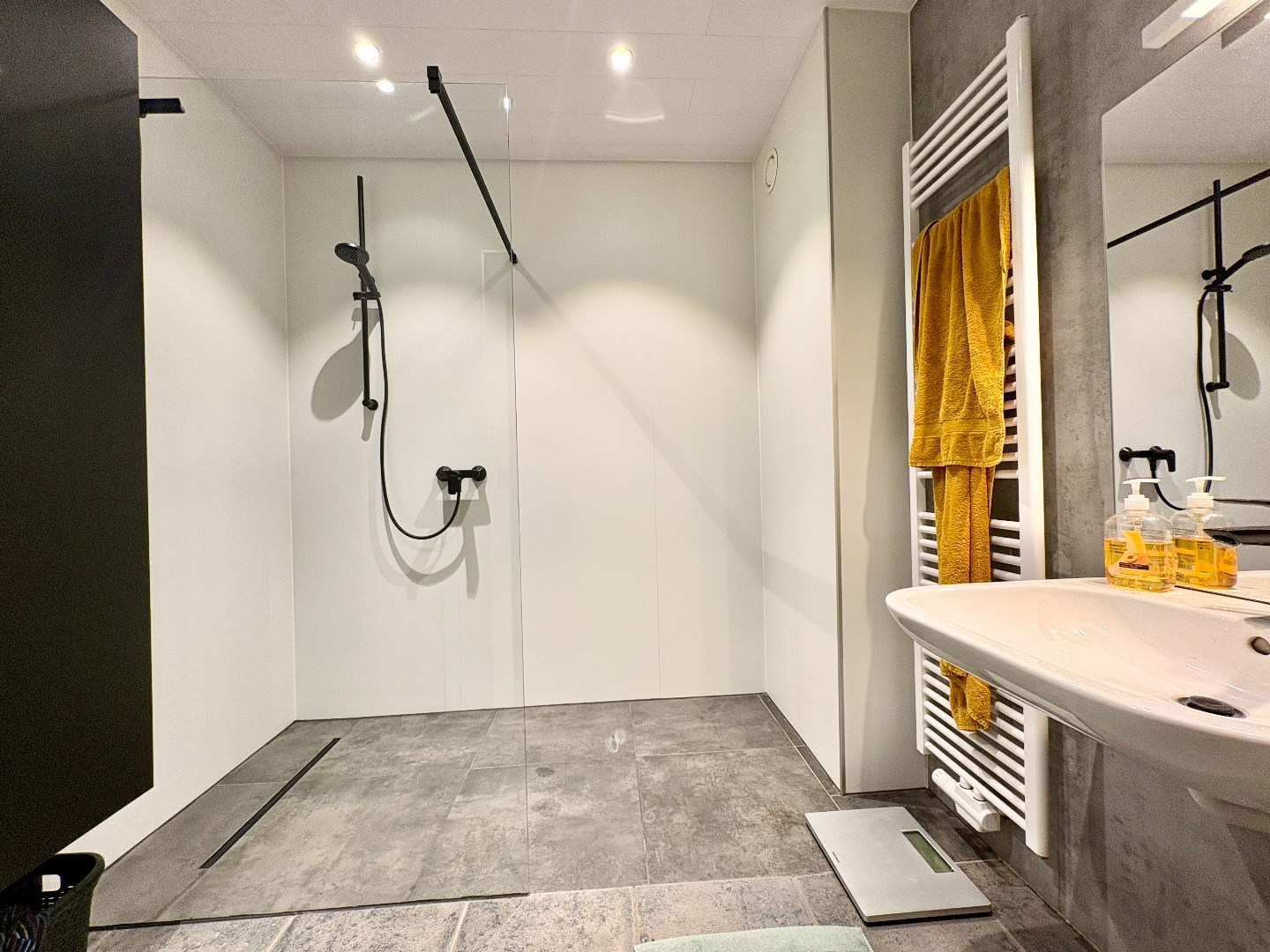 Verder zijn er 2 slaapkamers en centraal op de gang een badkamer. Deze is voorzien van inloopdouche, wastafel, handdoekendroger en is vrij recent.