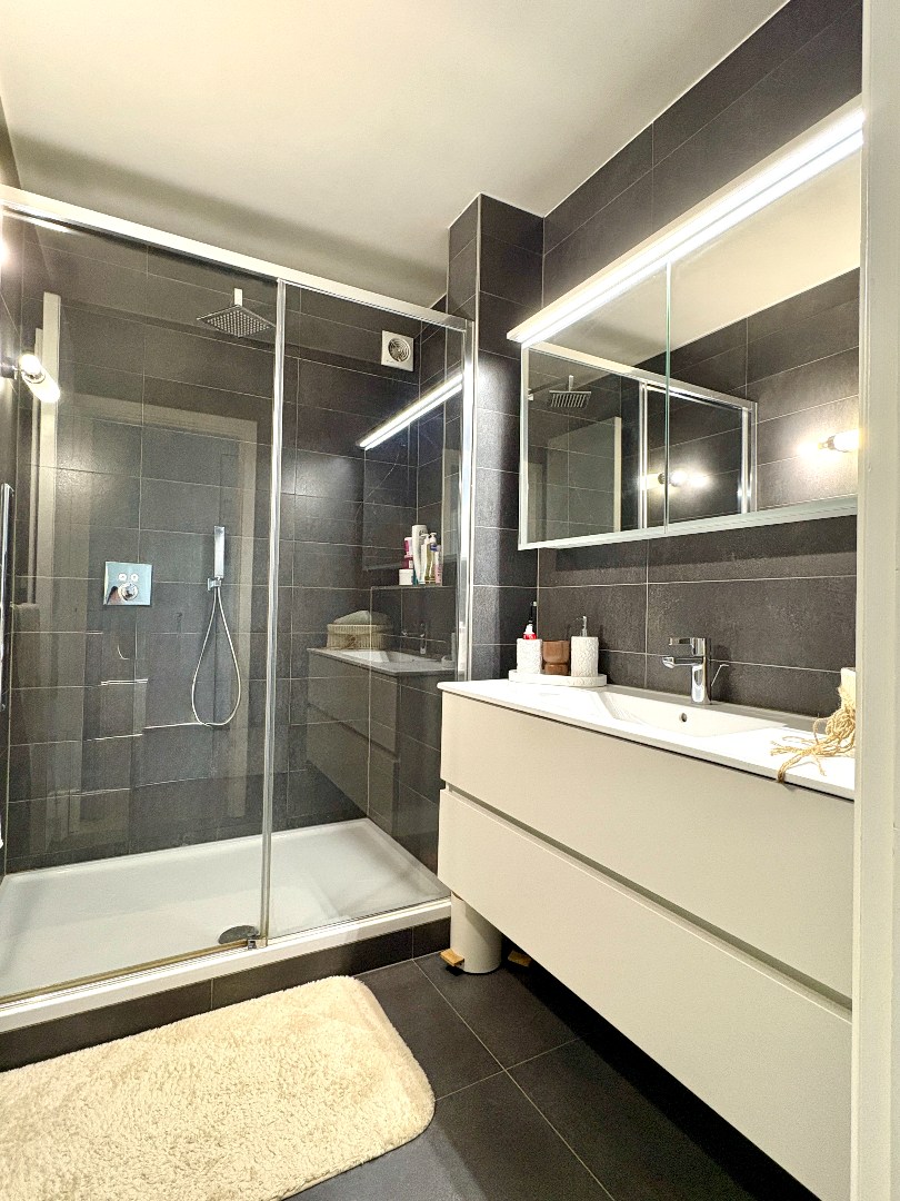 Achteraan het appartement zijn er 2 ruime slaapkamers. Centraal is de badkamer met inloopdouche en dubbele wastafel.