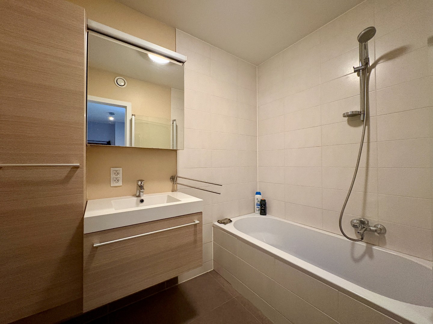 Bij het binnenkomen is er een inkomhal met apart gastentoilet en badkamer uitgerust met bad, douchescherm en een lavabo. Daarnaast zijn er 2 slaapkamers.