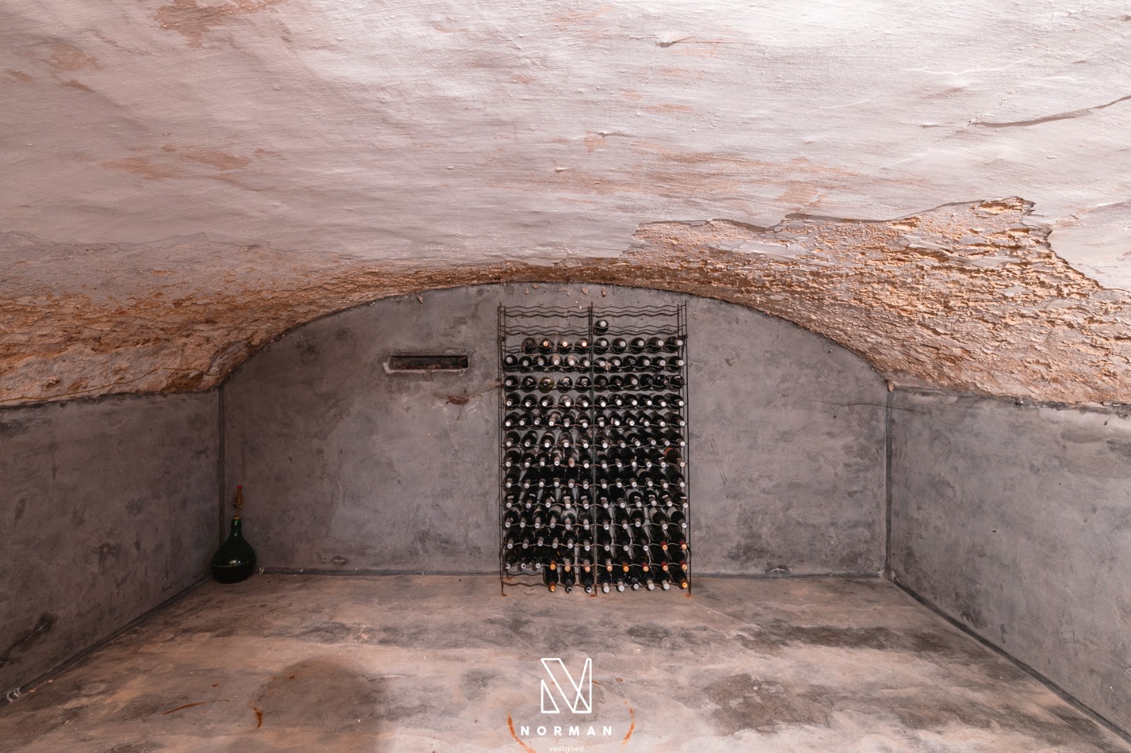 Binnenin biedt de te renoveren woning een functionele indeling met op het gelijkvloers een inkomhal die toegang geeft tot de zit- en leefruimte met open zicht op de binnenplaats, een keuken, twee kelders en twee polyvalente ruimtes die naar wens kunnen worden ingericht. De “volte kamers” benadrukken het authentieke karakter van de woning. Op de verdieping bevindt zich een ruime open zolder met grote mazouttank, aangevuld met twee kamers en twee trappen die zorgen voor een praktische verbinding met het gelijkvloers.
