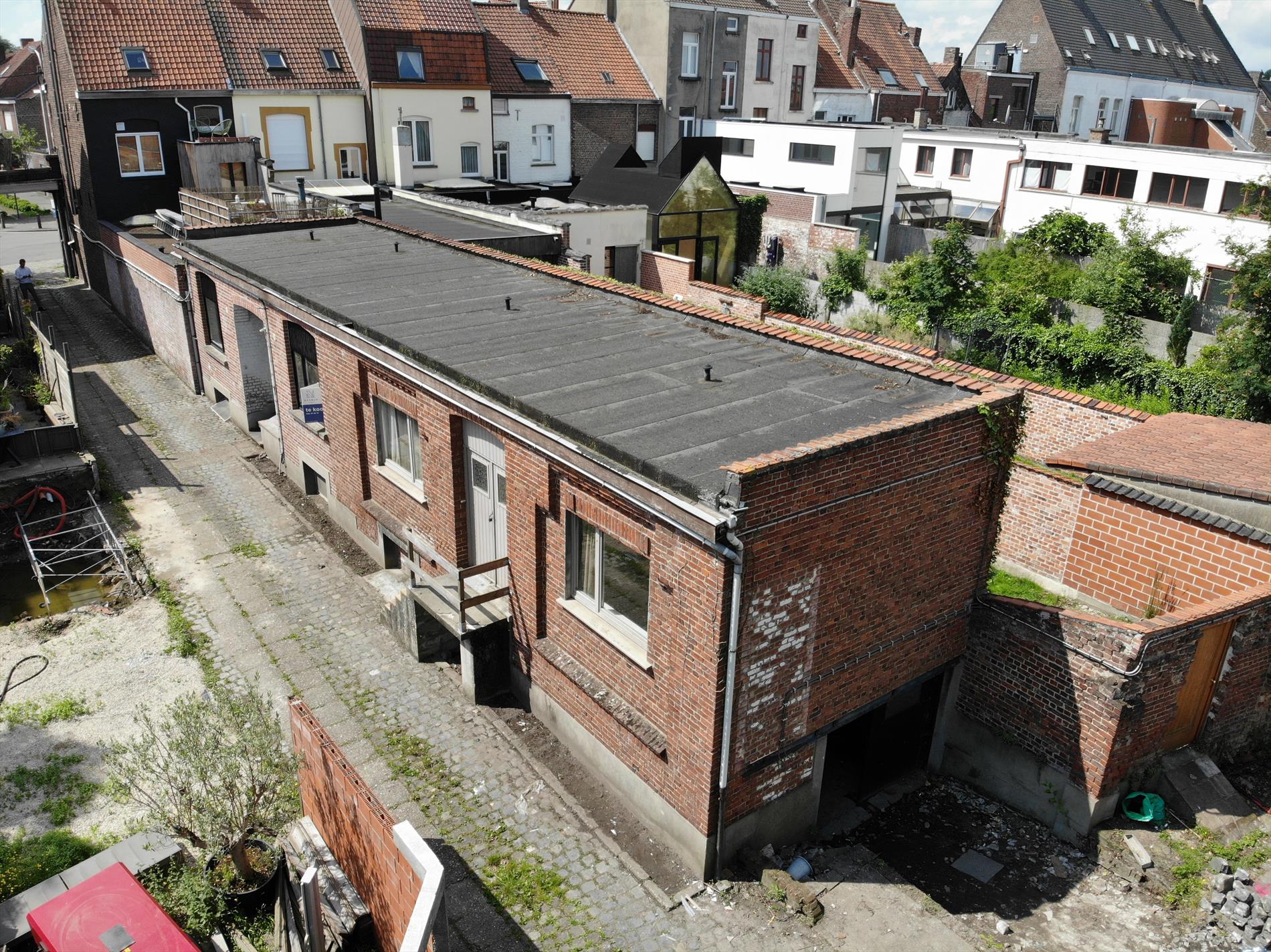 Aan de zijkant van het gebouw is er een oprijlaan in kasseien (erfdienstbaarheid).