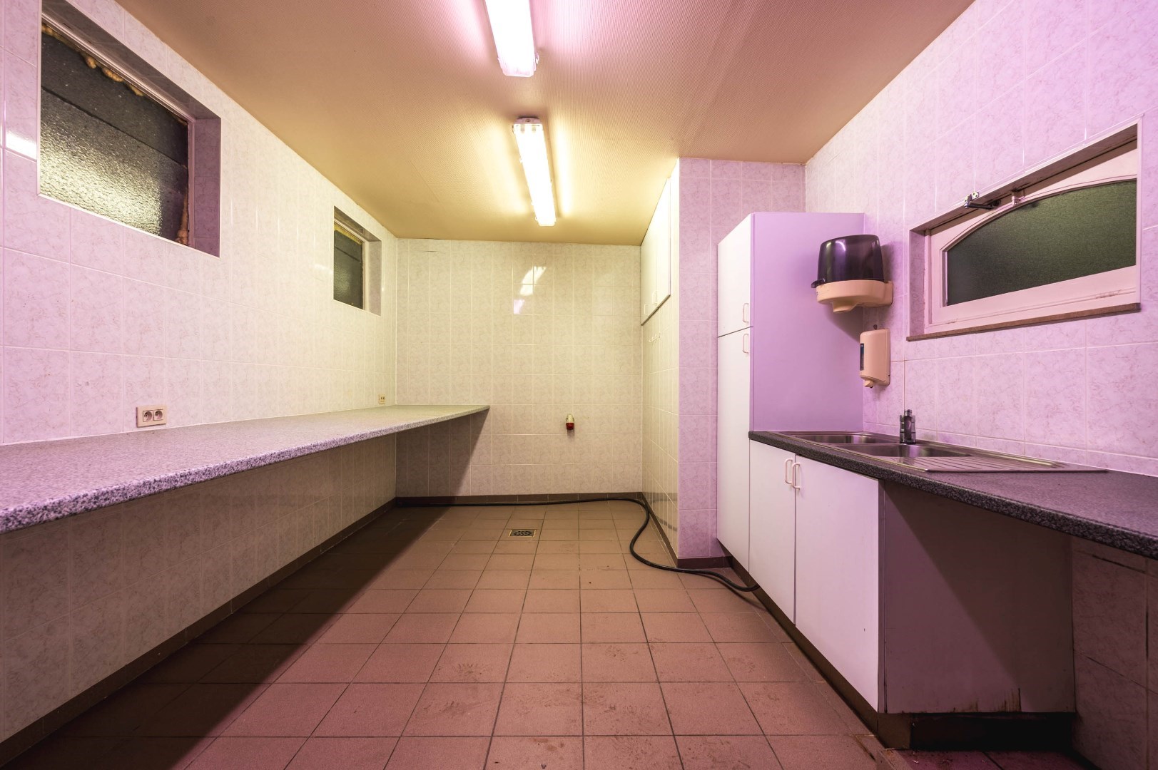 Momenteel is deze ingericht als viswinkel, zo zijn er verschillende ruimten die momenteel dienst doen als koelcel of atelier. Aan de voorzijde is er een atelier met aparte inkom naar privaat gedeelte. Verder is er een keuken en verschillende bureau’s/bergruimten.