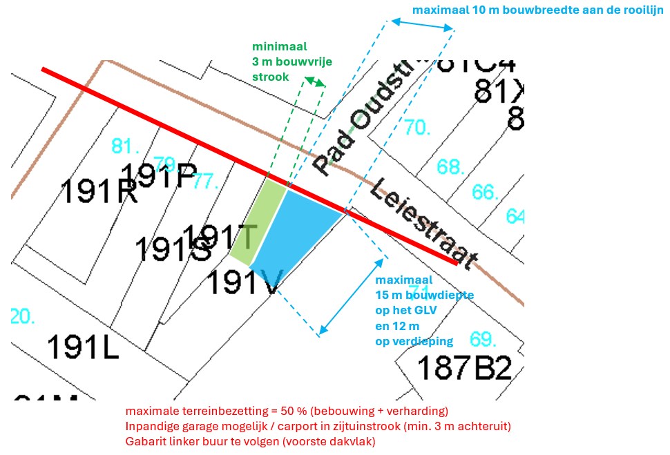 Bouwgrond op 323 m² met zuid gerichte tuin in de Leiestraat.