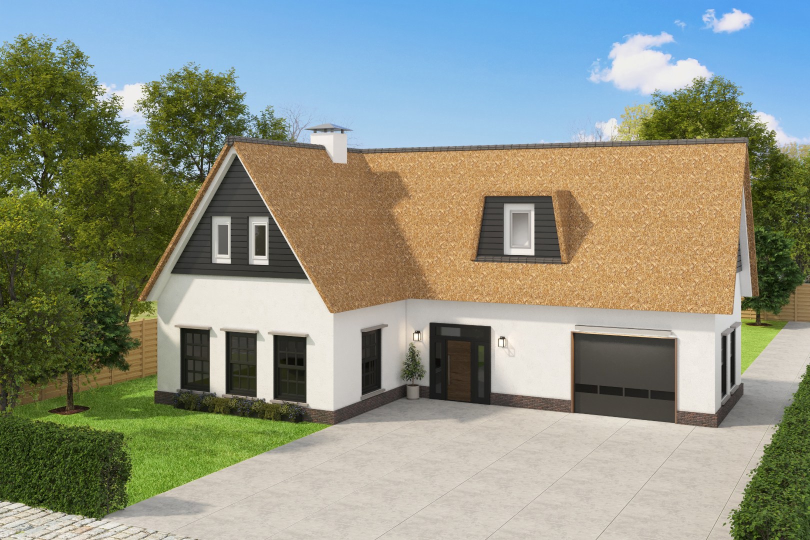 De zwarte toegangspoort, gelegen tussen huisnummer 12 en 14, garandeert maximale discretie en privacy. De oprit is reeds gedeeltelijk verhard met steenslag.