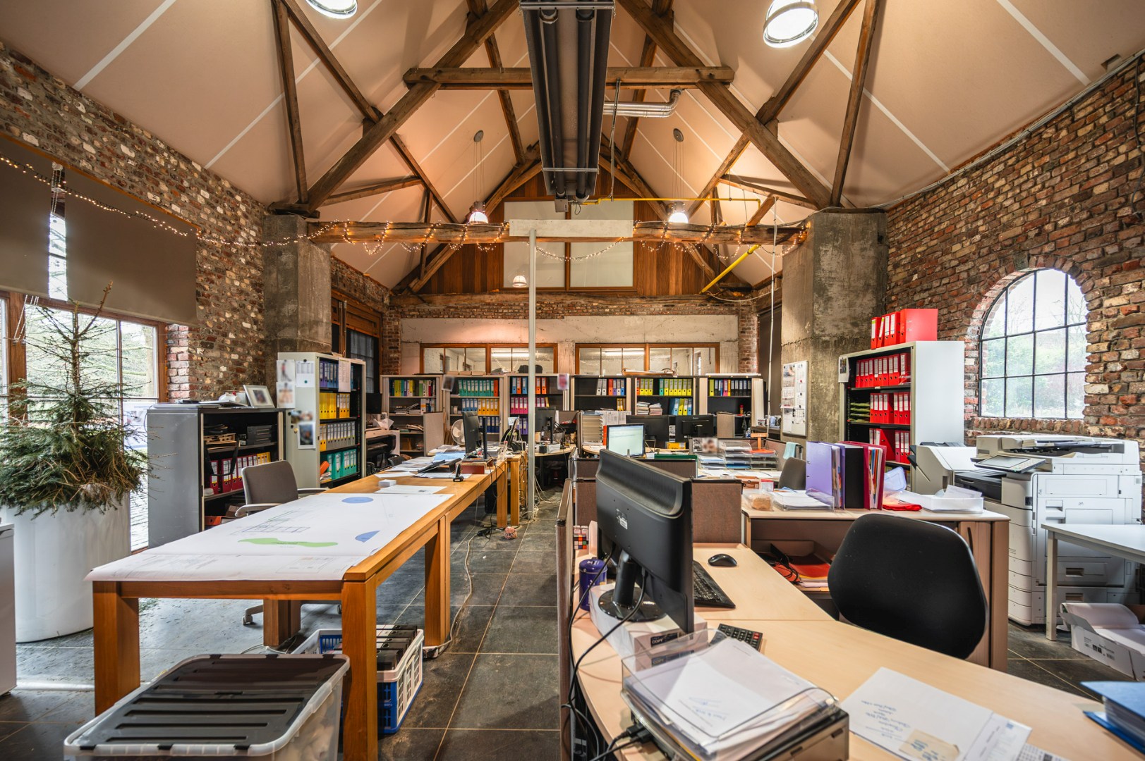 De vierkantshoeve bestaat uit verschillende gebouwen: een tot in de puntjes afgewerkte herenwoning, een geïntegreerde kantoorruimte die ook dienst kan doen als polyvalente ruimte, een stijlvol ingericht appartement in loftstijl, en diverse andere bijgebouwen, bergingen en garages, dit alles rond een piekfijn aangelegde binnenkoer.