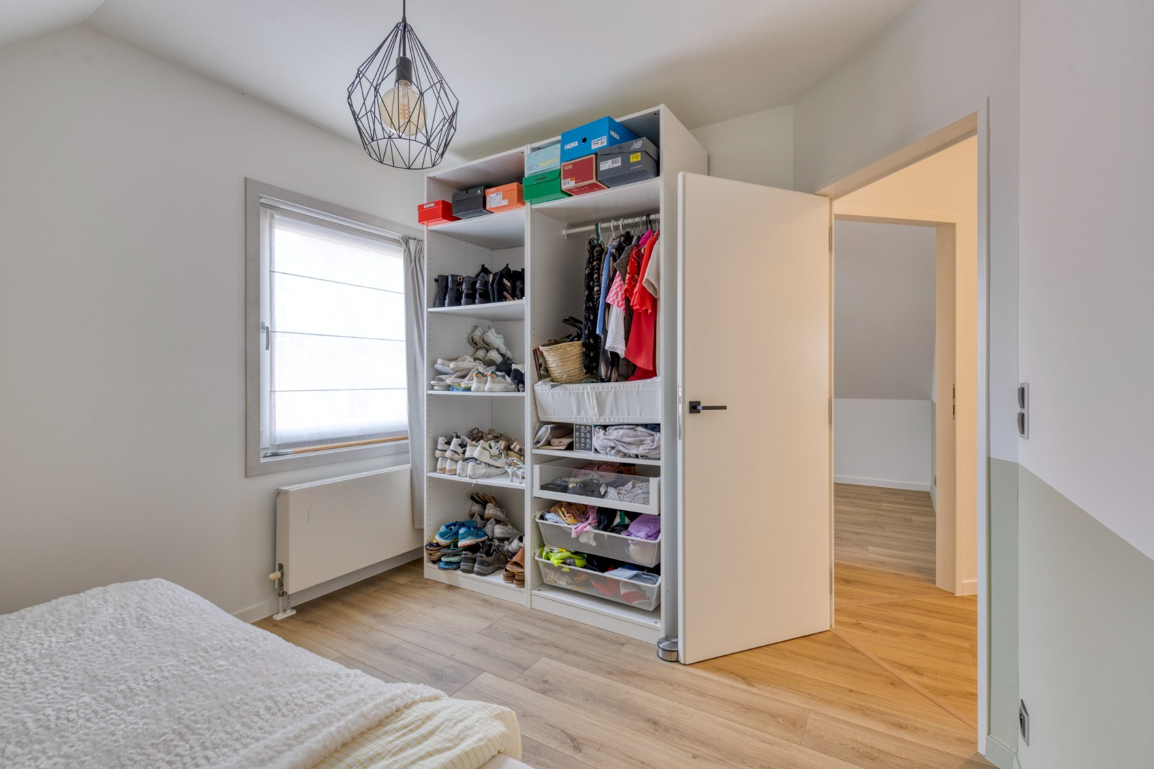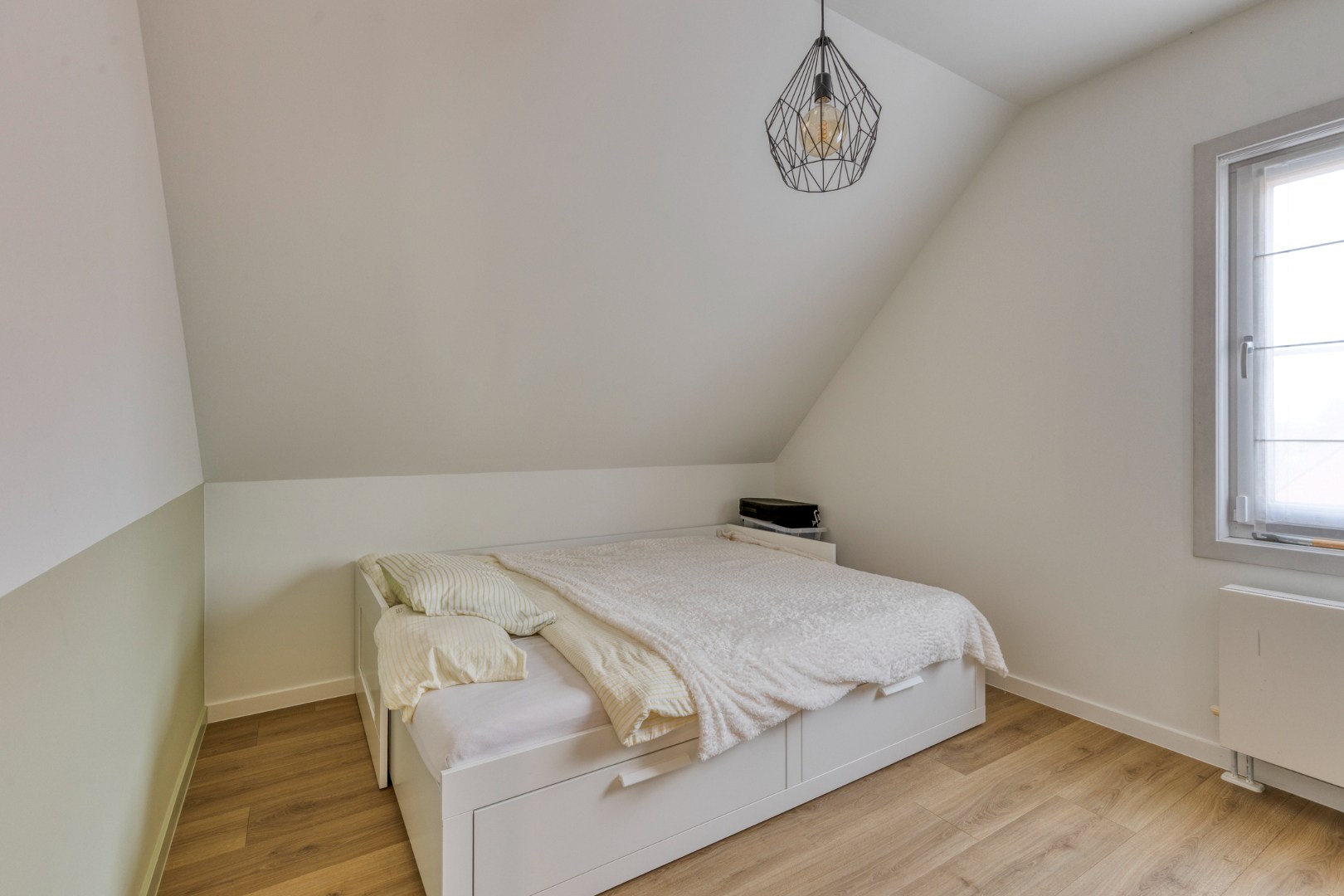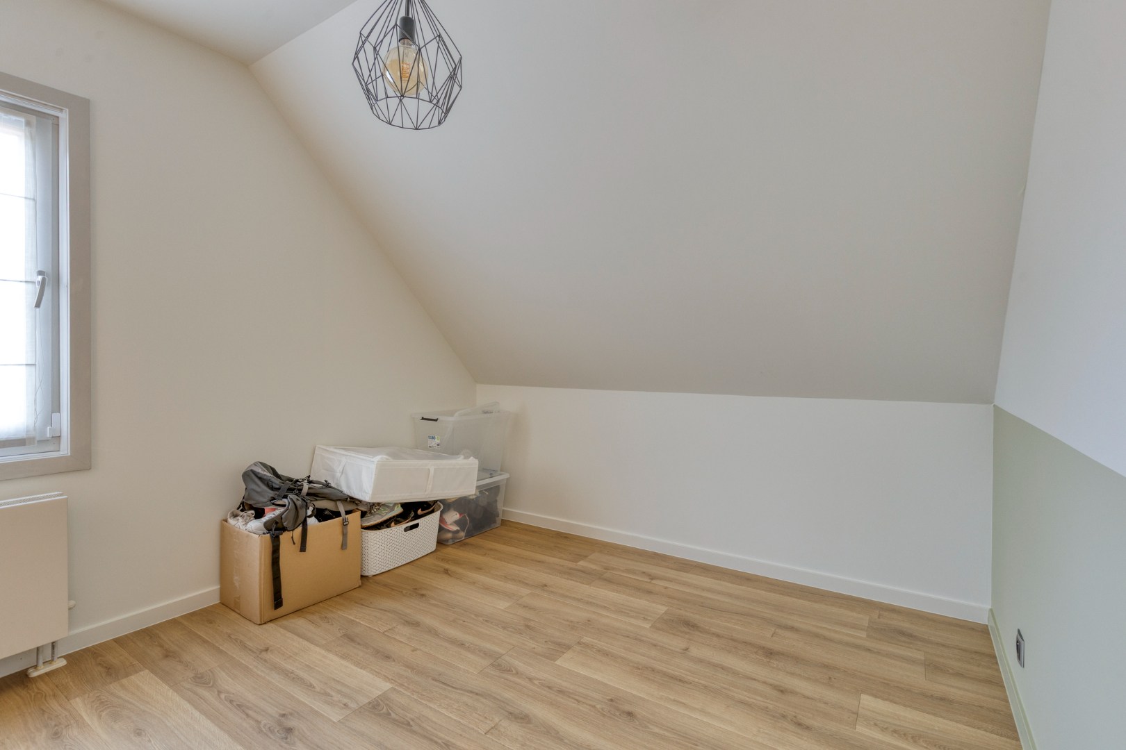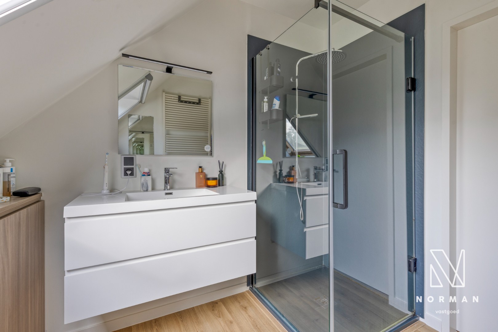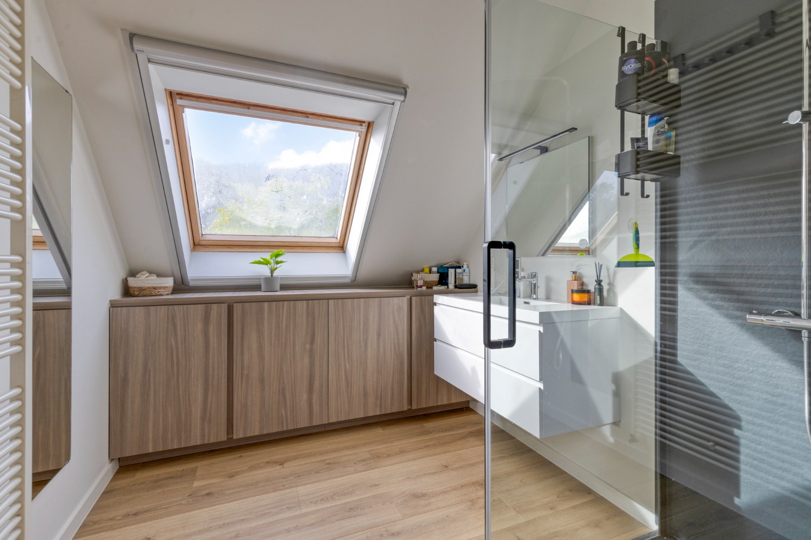 Het verdiep bevat 4 slaapkamers en is recent vernieuwd. Vloer, deuren, schilderwerk en badkamer zijn vernieuwd. Deze badkamer bevat een douche, maatkasten en wastafel. Een apart toilet op de gang. Ook is er nog een ruime zolder.