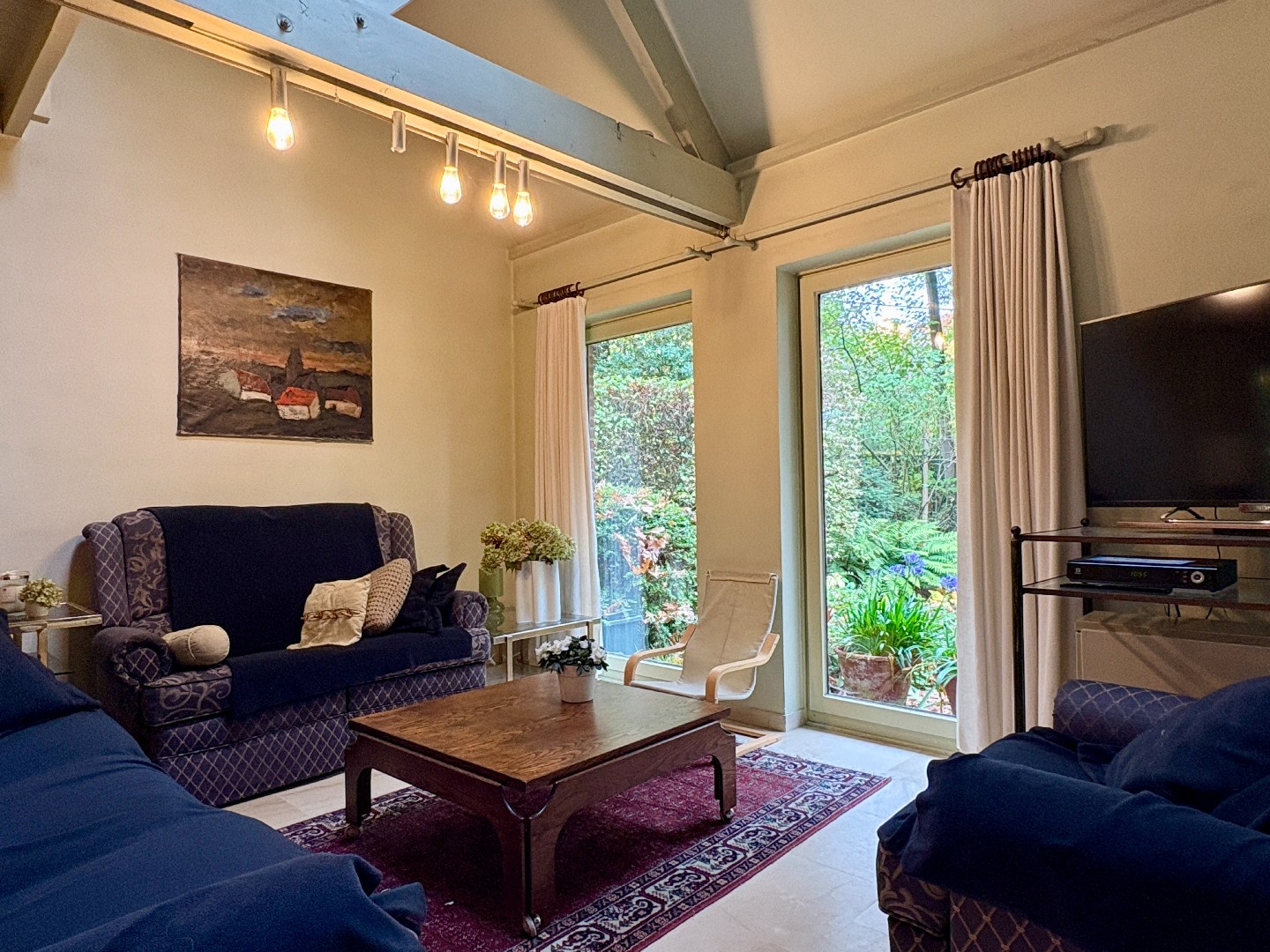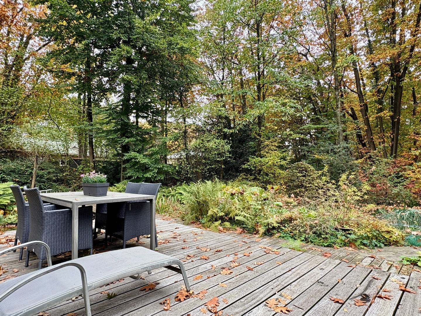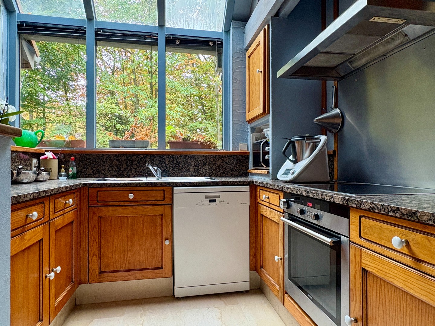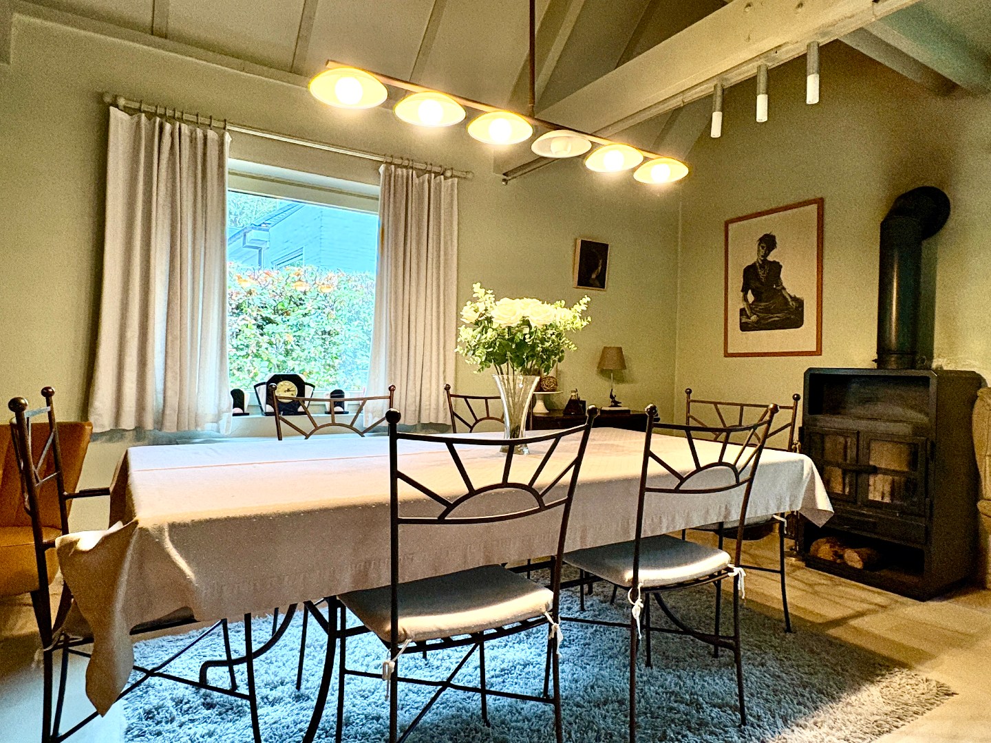 Het betreft een originele woning met vrij veel privacy en zo goed als geen inkijk in de woning. De leefruimte is aan de voorzijde van de woning gelegen. Samen met de open keuken kijkend op hun vijver met groot terras.