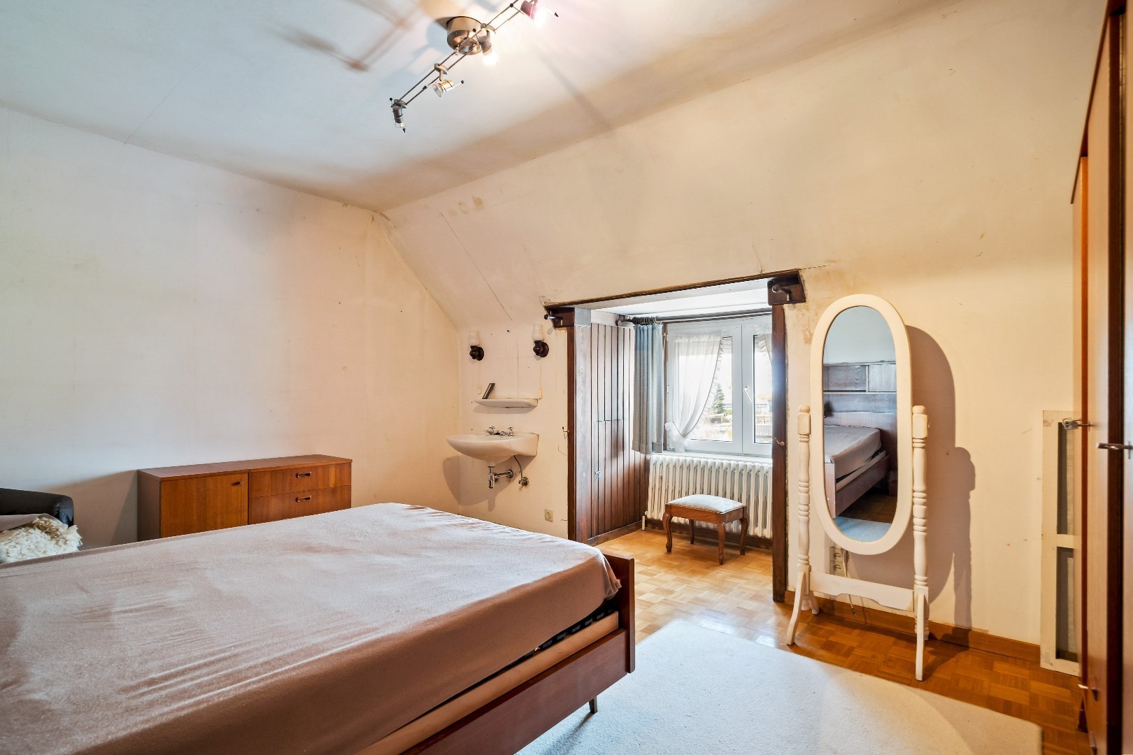De woning beschikt ook over een zolder en heeft achteraan nog een aparte garage met aanpalend een serre.