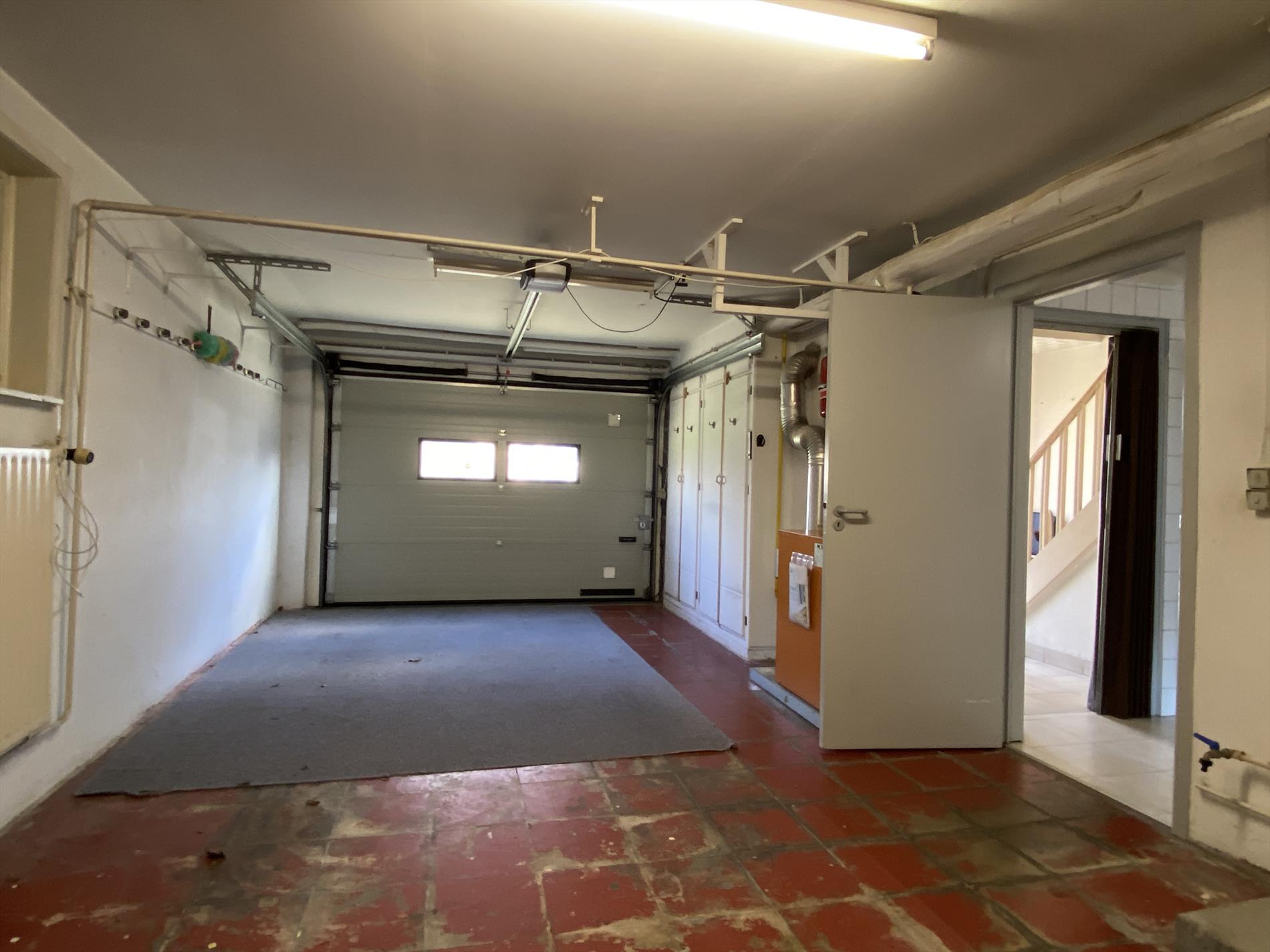 Inkom, berging, keuken, leefruimte ( kan als bureel of polyvalente ruimte ), douchekamer met toilet en 2 garages.