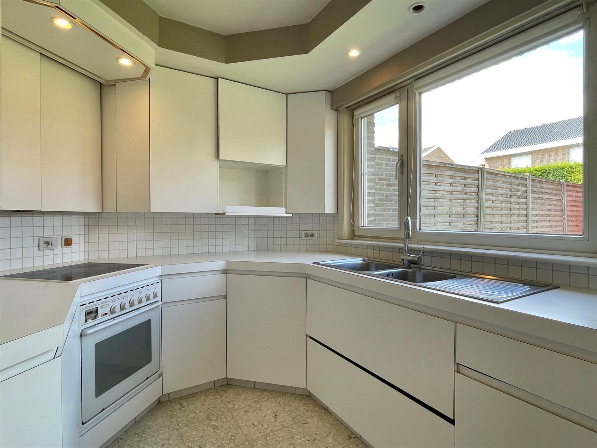- gelijkvloers: inkomhal met apart toilet, ruime woonkamer met zit- en eethoek, uitgeruste keuken met eethoek.