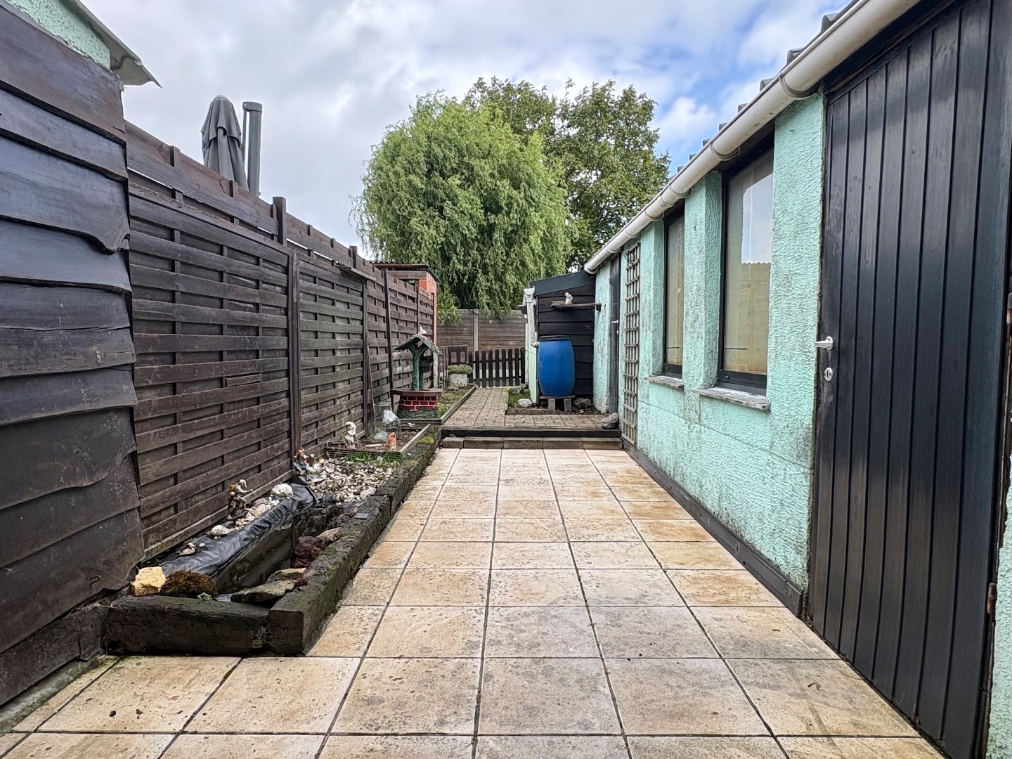 Buiten geniet je van een gezellig tuintje met achteruitweg en een losstaande garage.