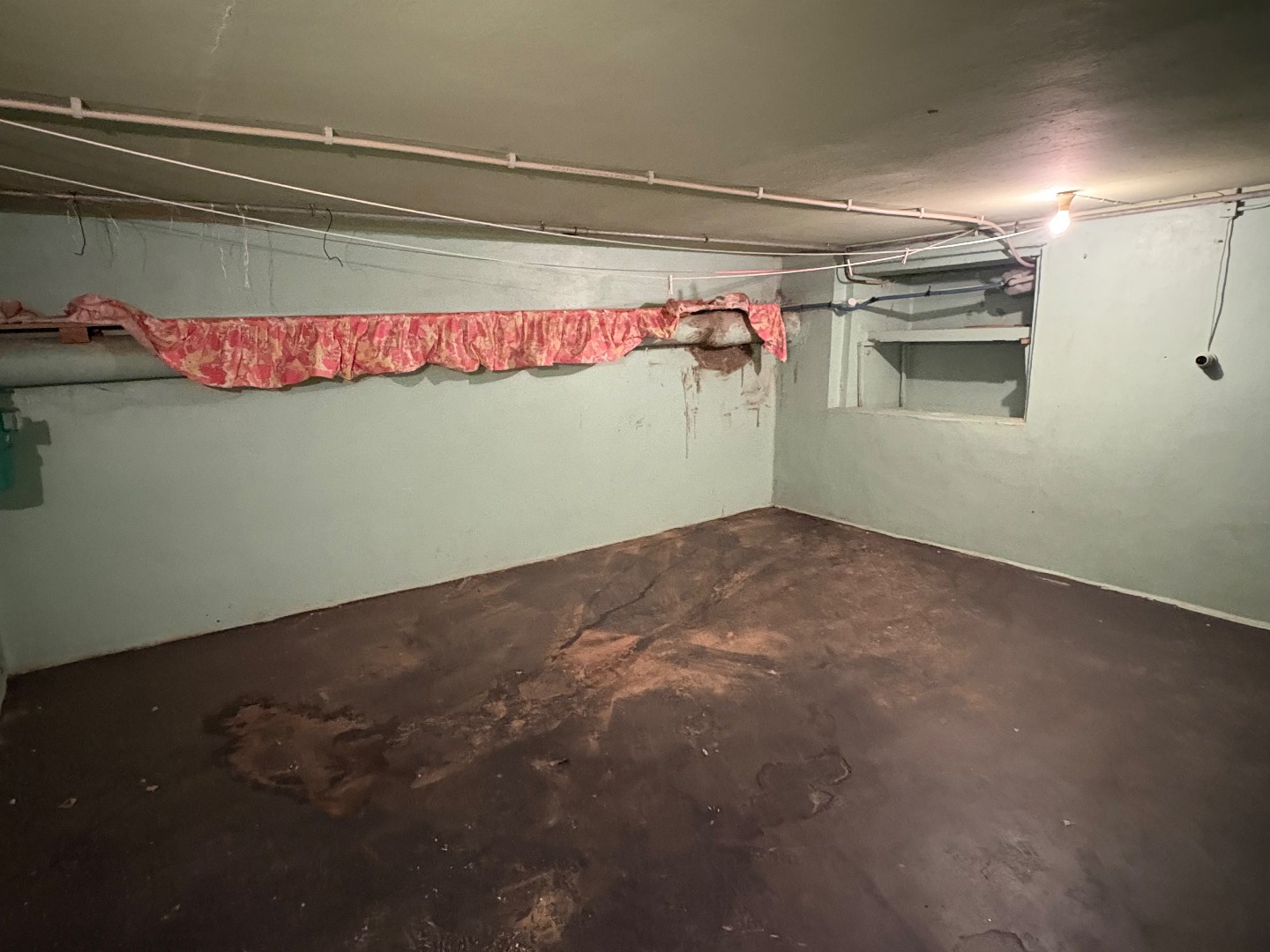 Bij het binnengaan kom je terecht in de leefruimte met hoge plafonds. Aansluitend vind je een uitbouw waar de keuken is ondergebracht, met zicht op de tuin. Daarnaast is er een apart toilet en een kelder.