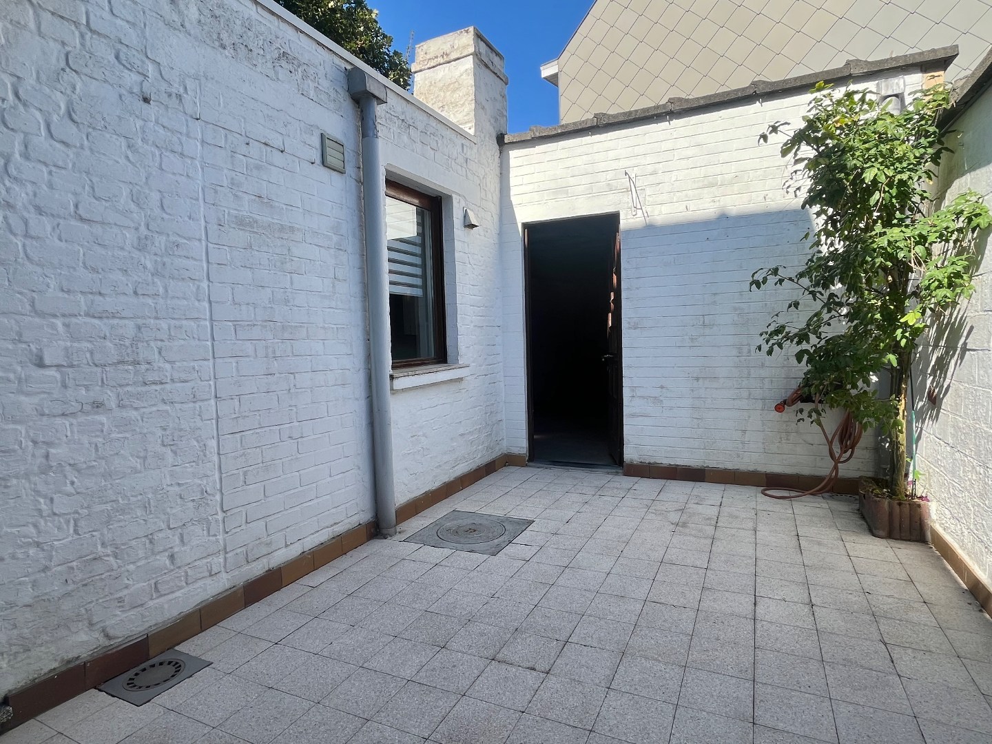 Buiten geniet je van een zonnig terras, vanwaar je toegang hebt tot de garage met automatische poort. Tot slot is er nog een droge kelder aanwezig.