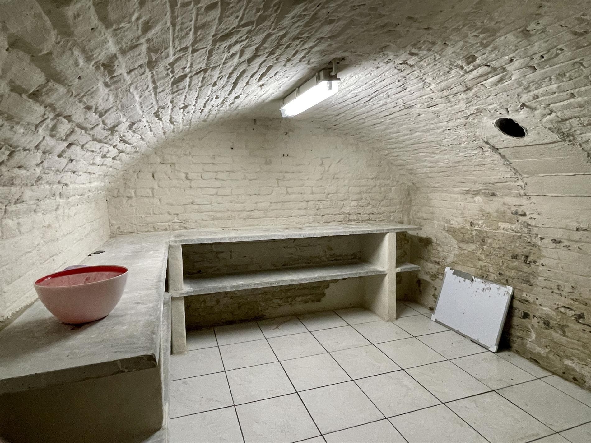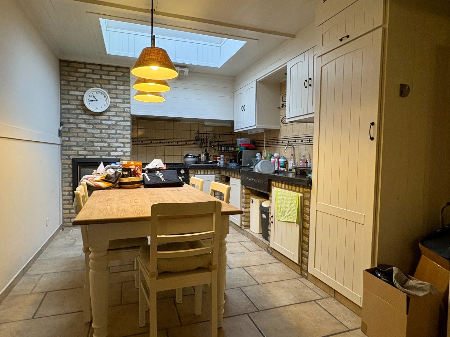 Achteraan de woning is de landelijke keuken. Vele kasten, natuursteenwerkblad, hoogwaardig gasfornuis, frigo, diepvries,.. Naast de keuken is er een ruime berging. Hier kan de was en droogkast geplaatst worden.