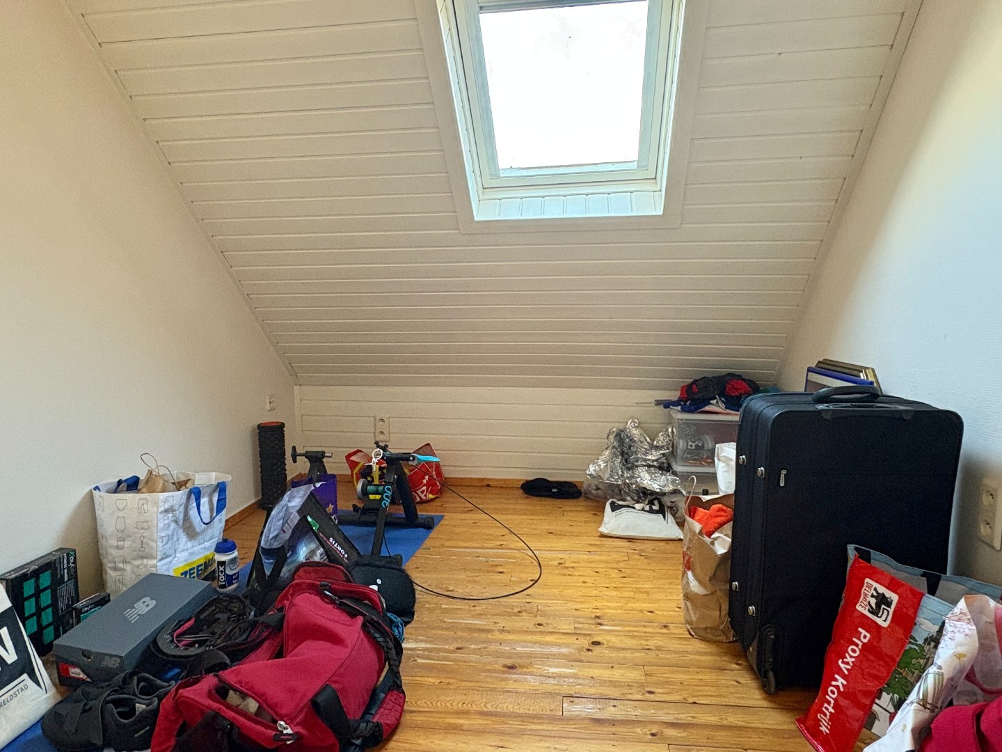 Het verdiep bevat 1 grote slaapkamer en 1 slaapkamer die onderverdeeld is in 2 kamers. Centraal op de gang zijn er vele maatkasten geplaatst. De badkamer bevat een wastafel, ligbad met douchescherm en terug kastruimte.