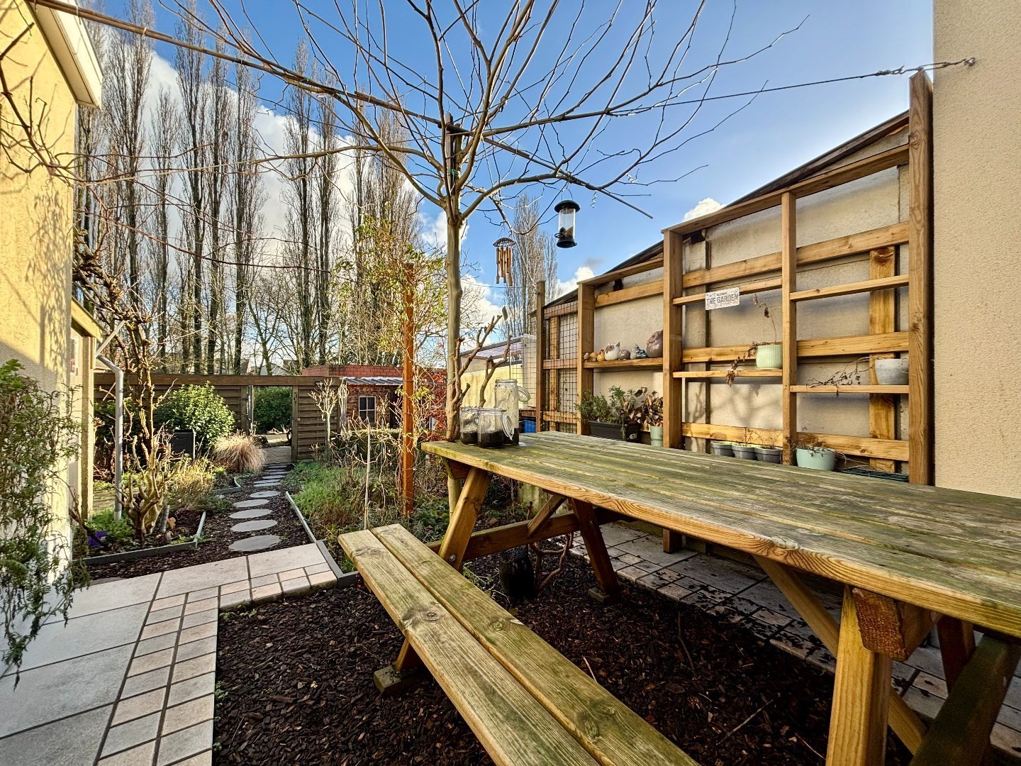 De tuin is prachtig geörienteerd, is bijzonder kleurrijk aangelegd en heeft een aangenaam terras. Verder is er ook een grote carport met uitweg.