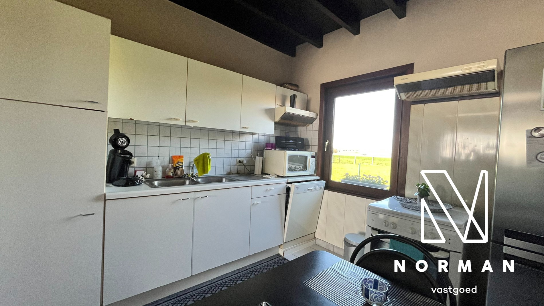 Op het gelijkvloers is er een lichtrijke leef- en zitruimte, keuken, berging, bureau of gelijkvloerse kamer en een badkamer. Op de eerste verdieping is er een slaapkamer en een open zolderruimte die verder afgewerkt kan worden.