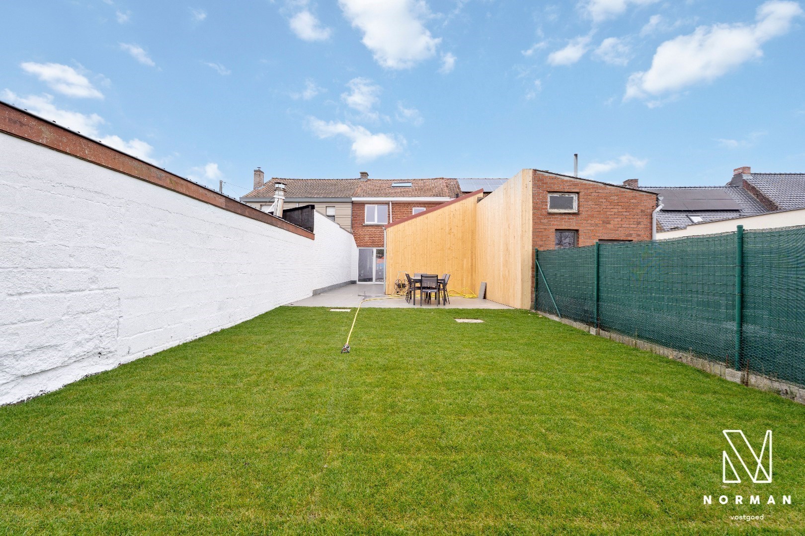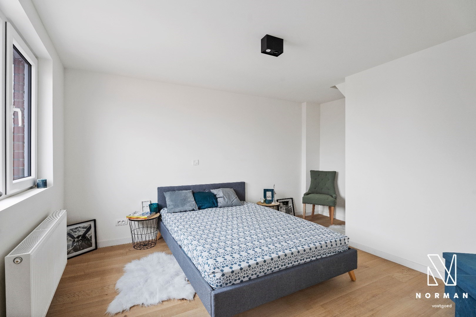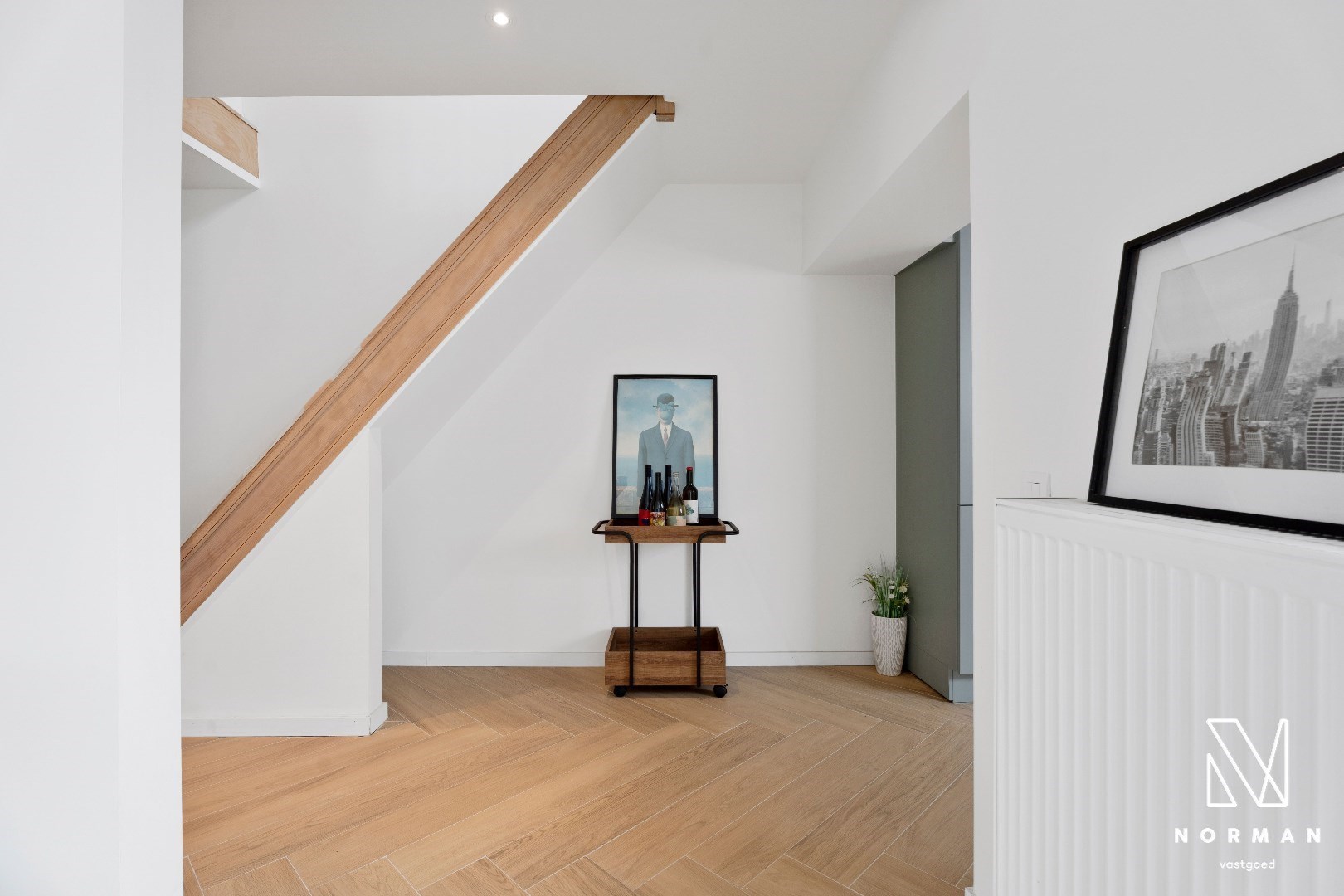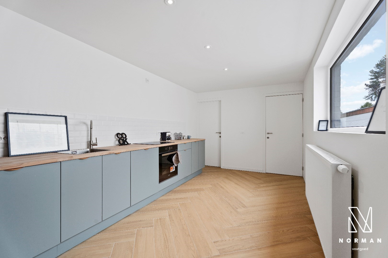 Bij aankomst wordt u verwelkomd in de ruime leef- en zitruimte, waar grote raampartijen zorgen voor veel lichtinval en een mooi zicht op de grote tuin met vernieuwd terras en verzorgde grasmat. Aansluitend vindt u de volledig uitgeruste keuken, voorzien van alle nodige toestellen, met toegang tot een praktische berging en een afzonderlijk toilet.