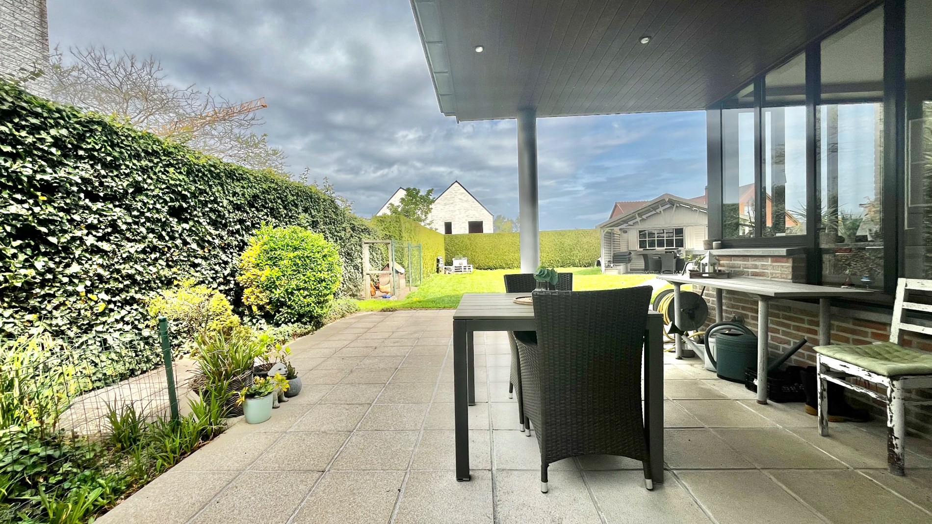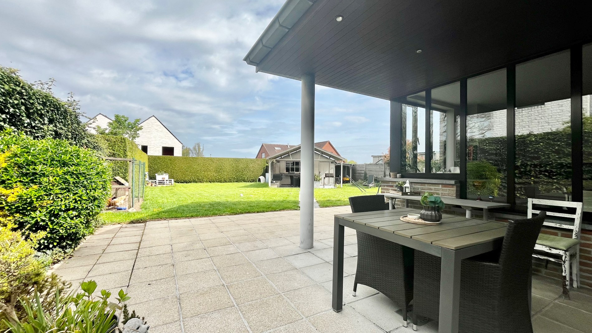 De woning, rustige ligging en dichtbij de vaart, heeft een leuk tuinhuis met overdekking zodat er optimaal kan genoten worden van de zonnige tuin.