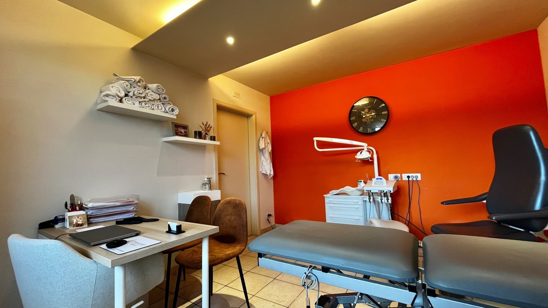 Deze gezinswoning heeft de volgende indeling: op het gelijkvloers zijn er 2 gelijkvloerse praktijkkamers, toilet, een grote leef en open zitruimte en keuken, badkamer(wasruimte), berging, garage,...