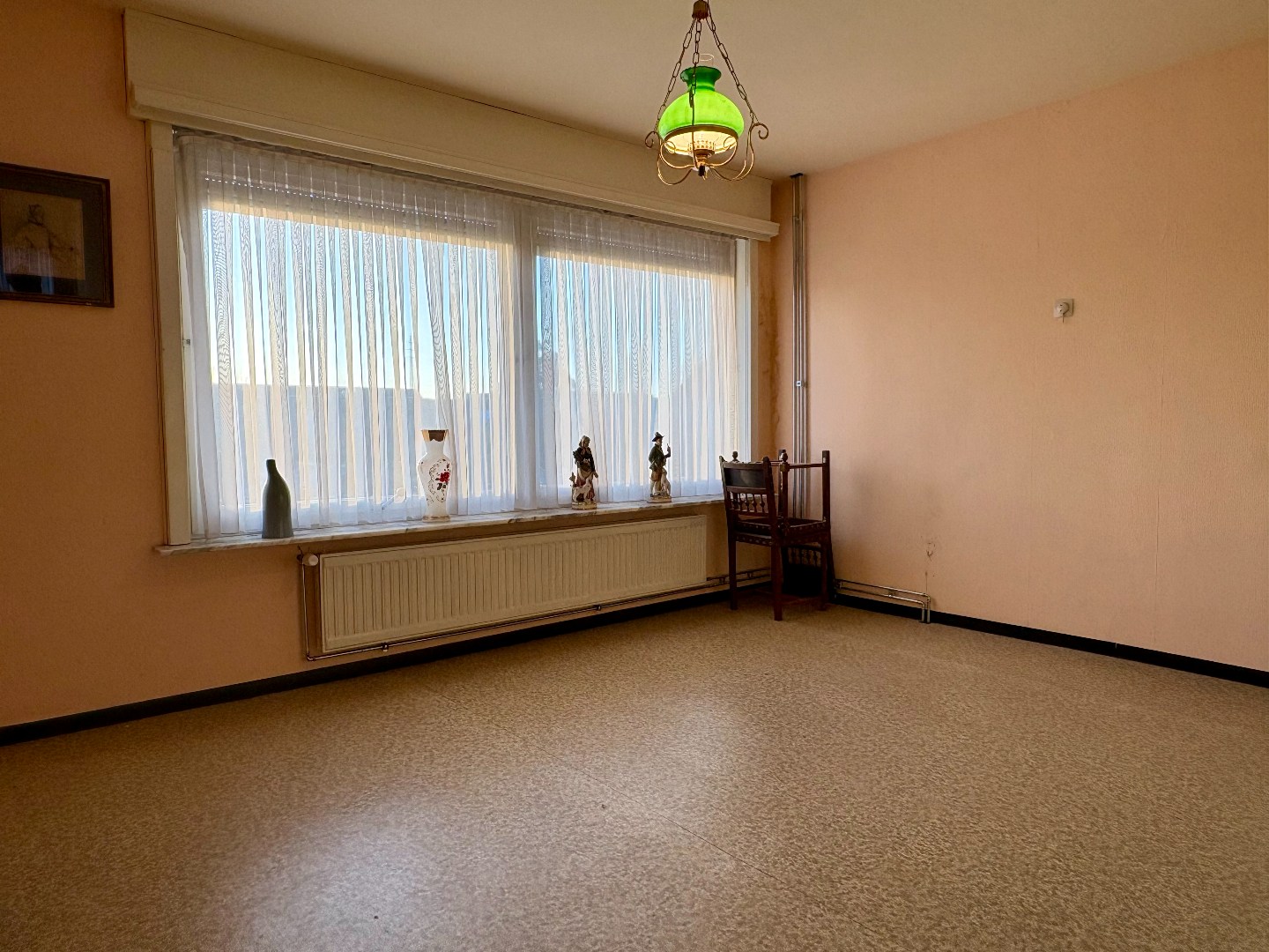 Vervolgens kom je in de lichtrijke leefruimte, uitgerust met centrale verwarming en een gezellige houtkachel. Vanuit de leefruimte geniet je van een mooi zicht op de zuidoost-georiënteerde tuin.