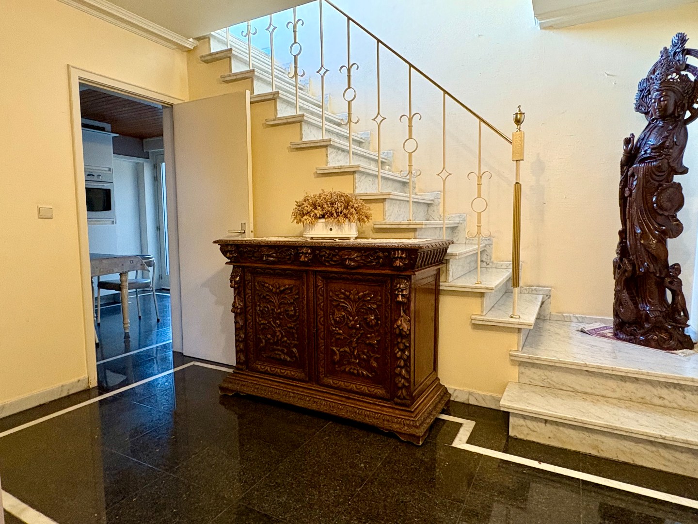 Aansluitend bevindt zich de vernieuwde keuken, van waaruit je rechtstreeks toegang hebt tot de tuin. Verder is er nog een inpandige garage die omgebouwd kan worden tot bureauruime of praktijkruimte.